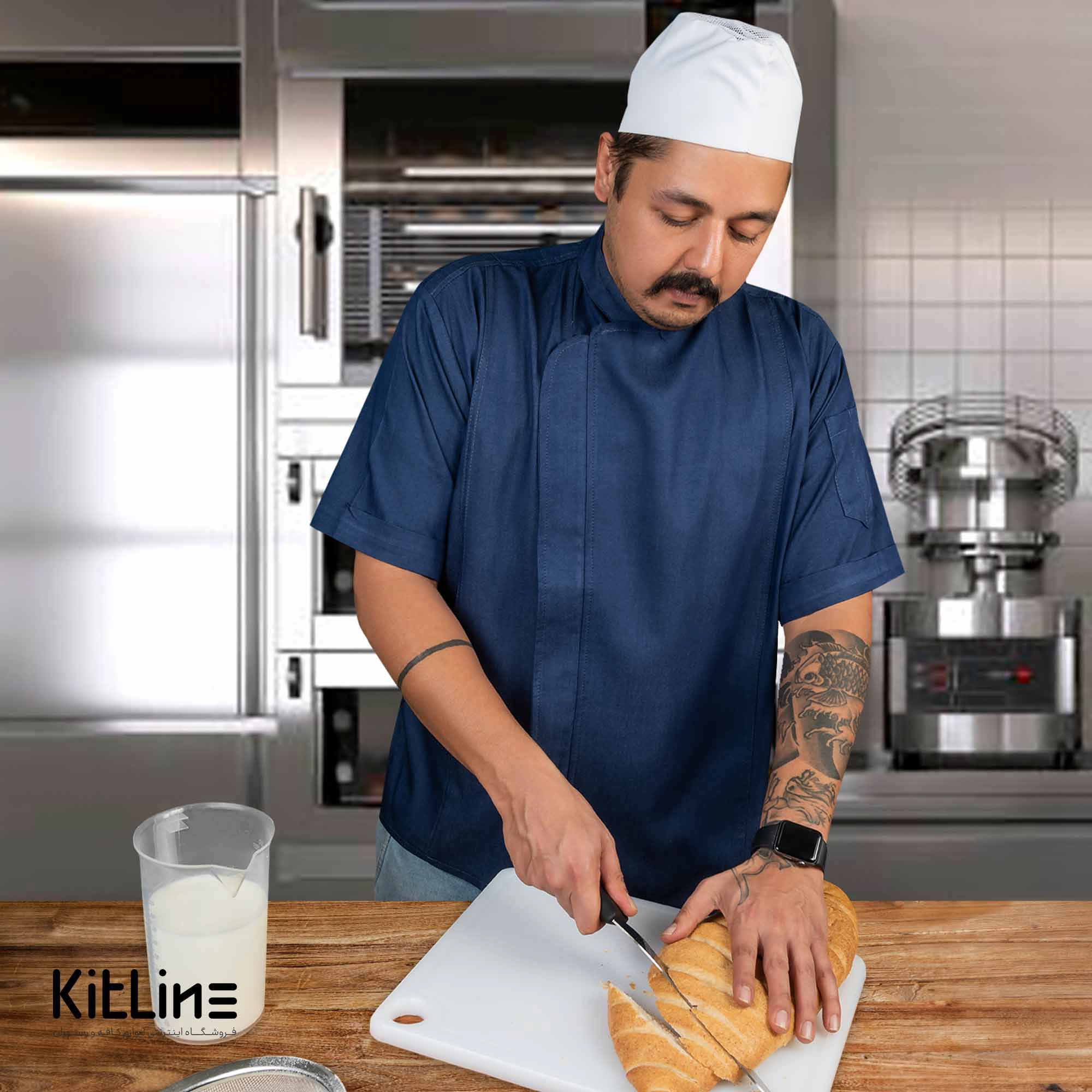 روپوش سرآشپز آستین بلند با دکمه جداشو راه راه طوسی آریا