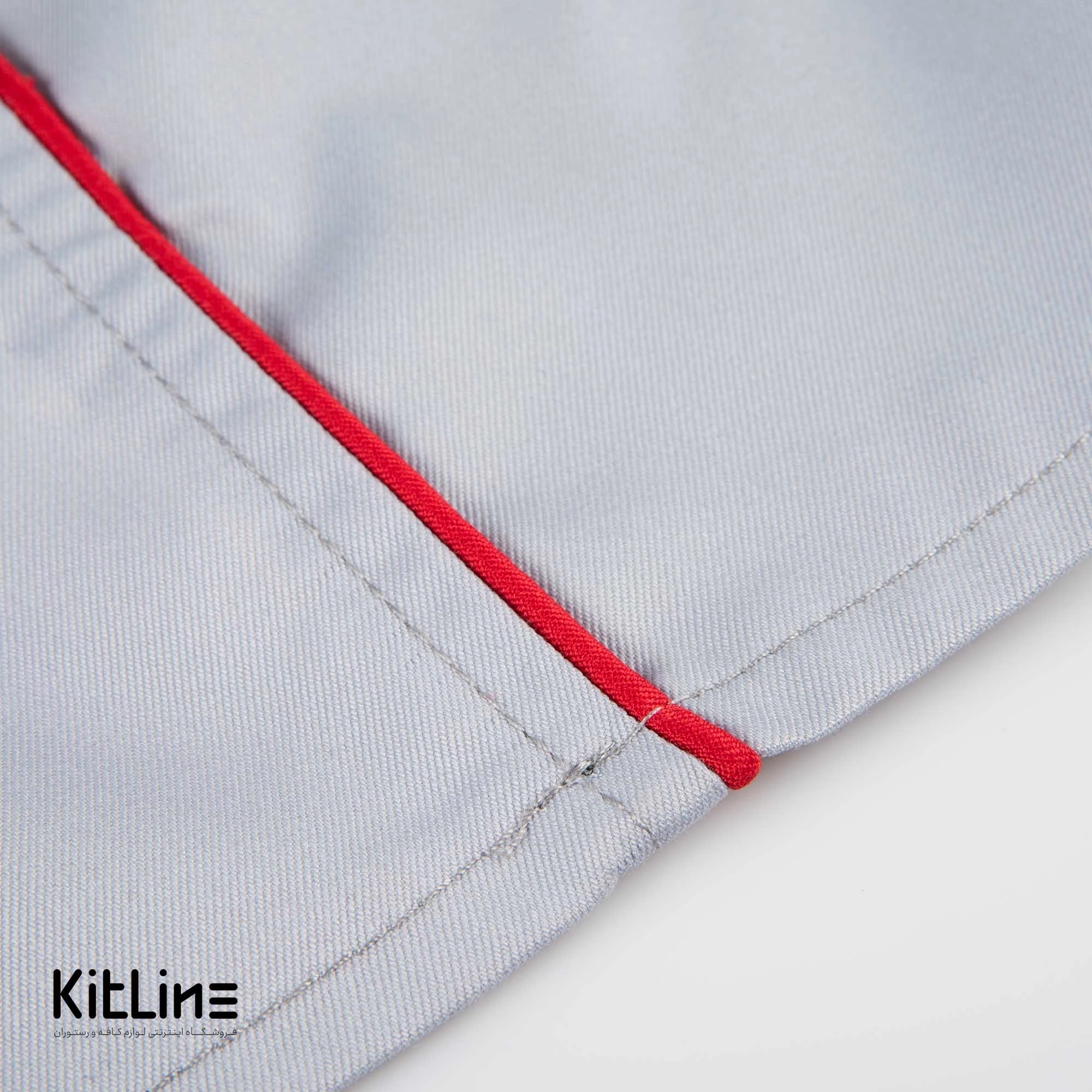 روپوش سرآشپز آستین بلند طوسی خرج کار قرمز تک فرم