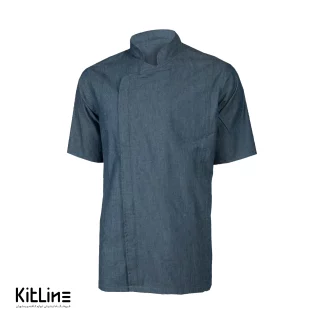 روپوش زیپی آستین کوتاه جين کاغذی آبی سارا فرم