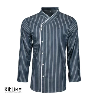 روپوش سرآشپز آستین بلند دکمه جداشو راه راه سرمه ای پوشاکو