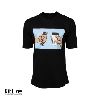 تیشرت آستین کوتاه مشکی طرح کلمه قهوه آرت آویز