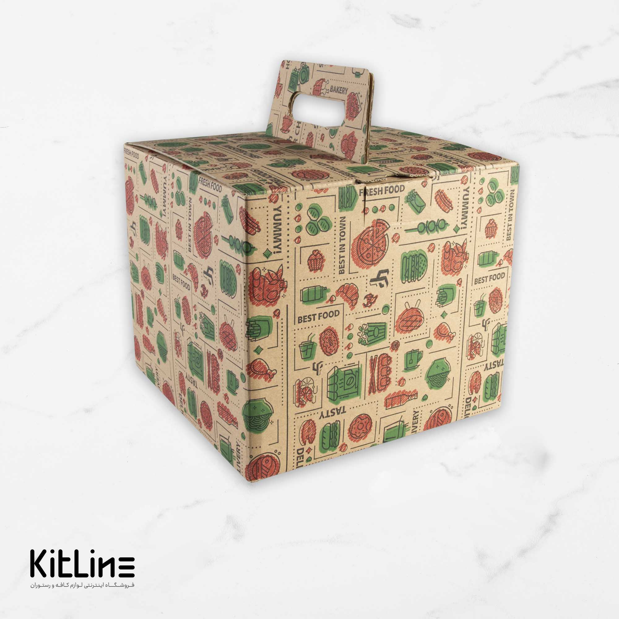 جعبه کاپ هولدر دسته دار یکبار مصرف کرافت ضخیم ۱۸×۲۰×۲۰ سانتیمتری (کارتن ۲۵ عددی)