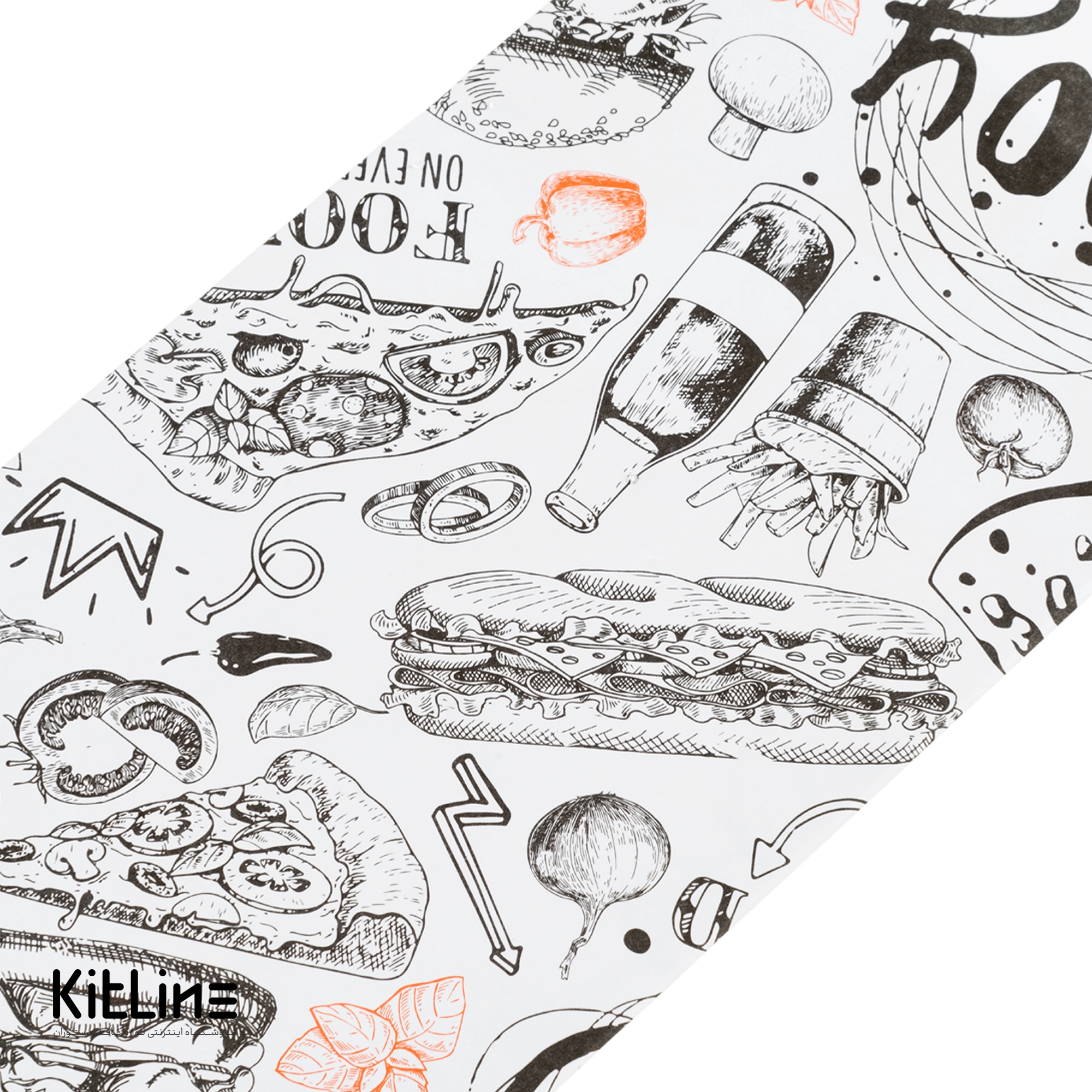 پاکت یکبار مصرف کاغذی قاشق و چنگال ۱۰×۲۴ سانتیمتری طرح رگباری نارنجی و مشکی (کارتن ۲۵۰ عددی)