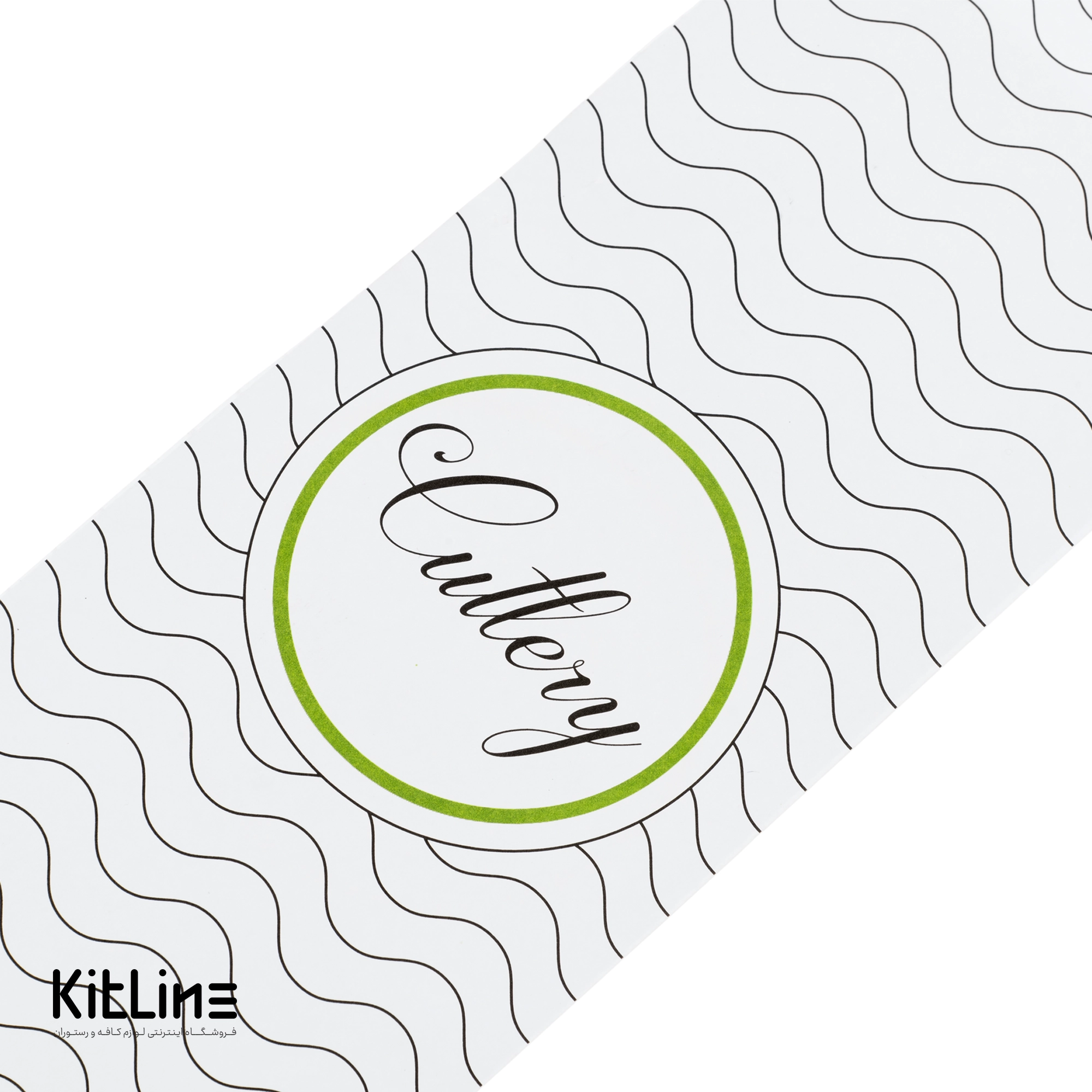 پاکت یکبار مصرف کاغذی قاشق و چنگال ۹×۲۲ سانتیمتری طرح موج سبز و مشکی (کارتن ۲۵۰ عددی)
