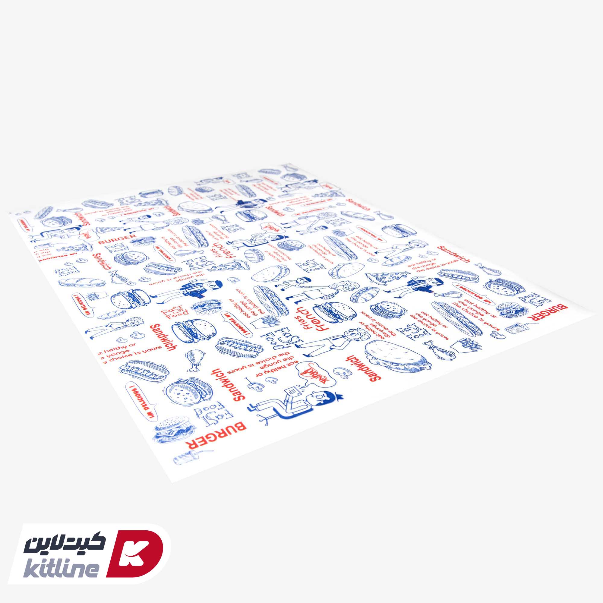 کاغذ کف سینی یکبار مصرف طرح برگر ۲۴×۳۴ سانتیمتری (کارتن ۵ کیلوگرمی)