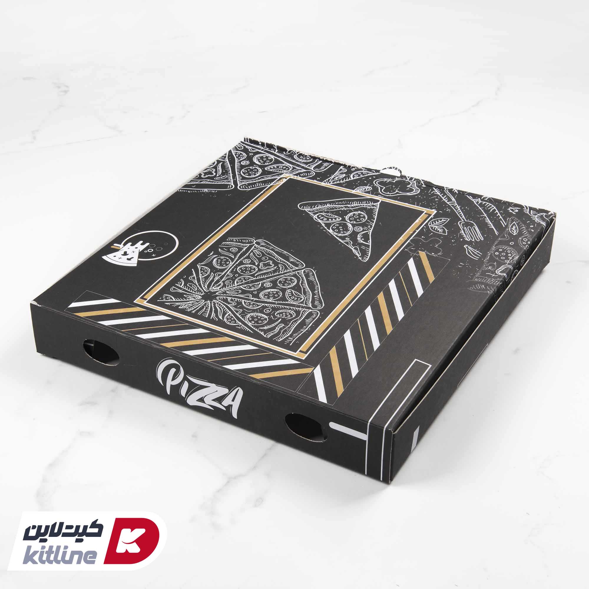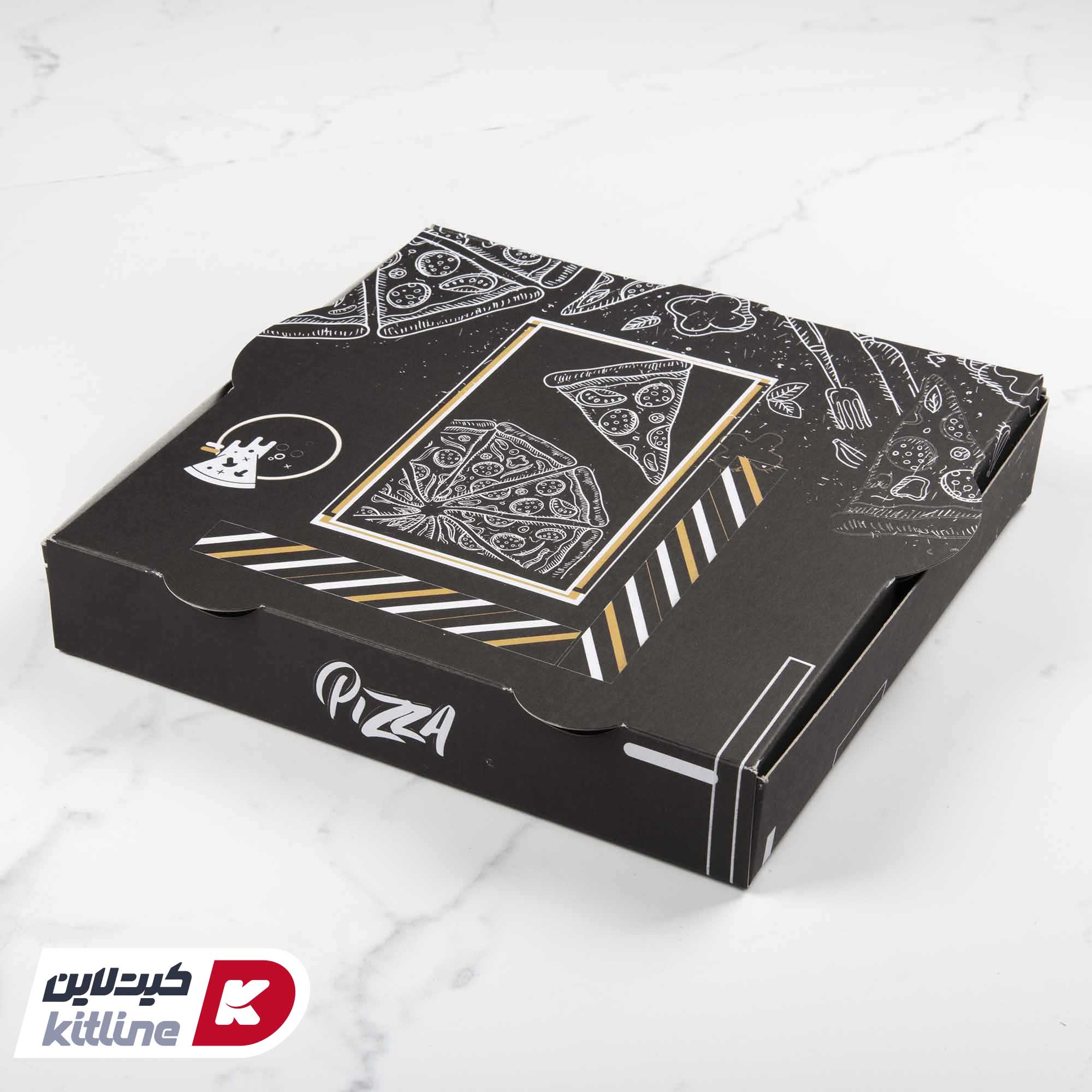 جعبه پیتزا کاغذی طرح دار مشکی ۴۰ سانتیمتری (کارتن ۱۰۰ عددی)