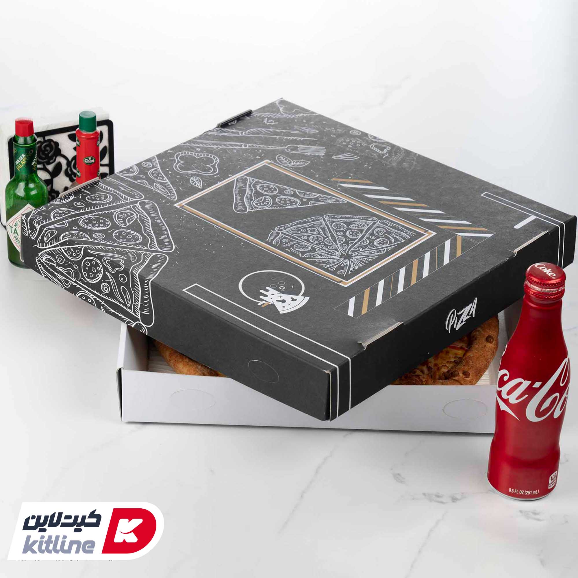 جعبه پیتزا کاغذی طرح دار مشکی ۲۴ سانتیمتری (کارتن ۲۰۰ عددی)