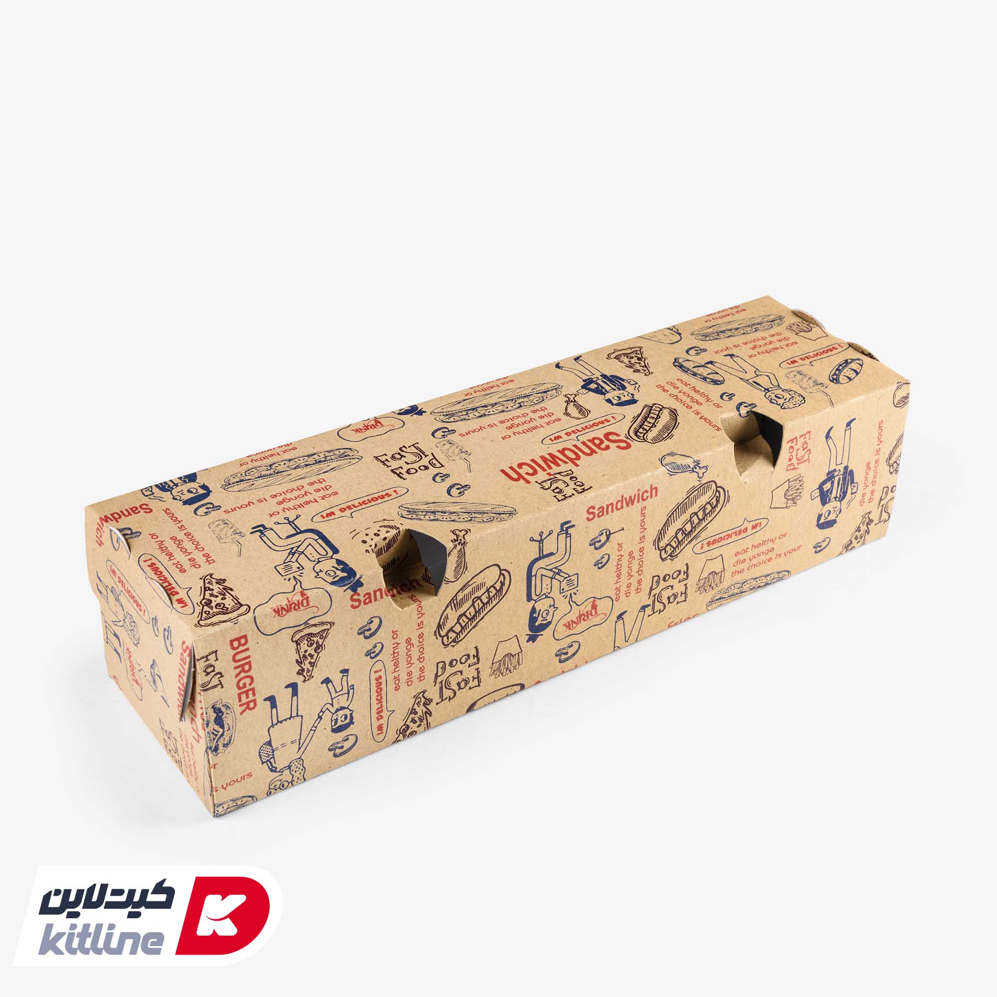 جعبه ساندویچ یکبار مصرف کاغذی ۷×۲۵ سانتیمتری (کارتن ۱۰۰ عددی)