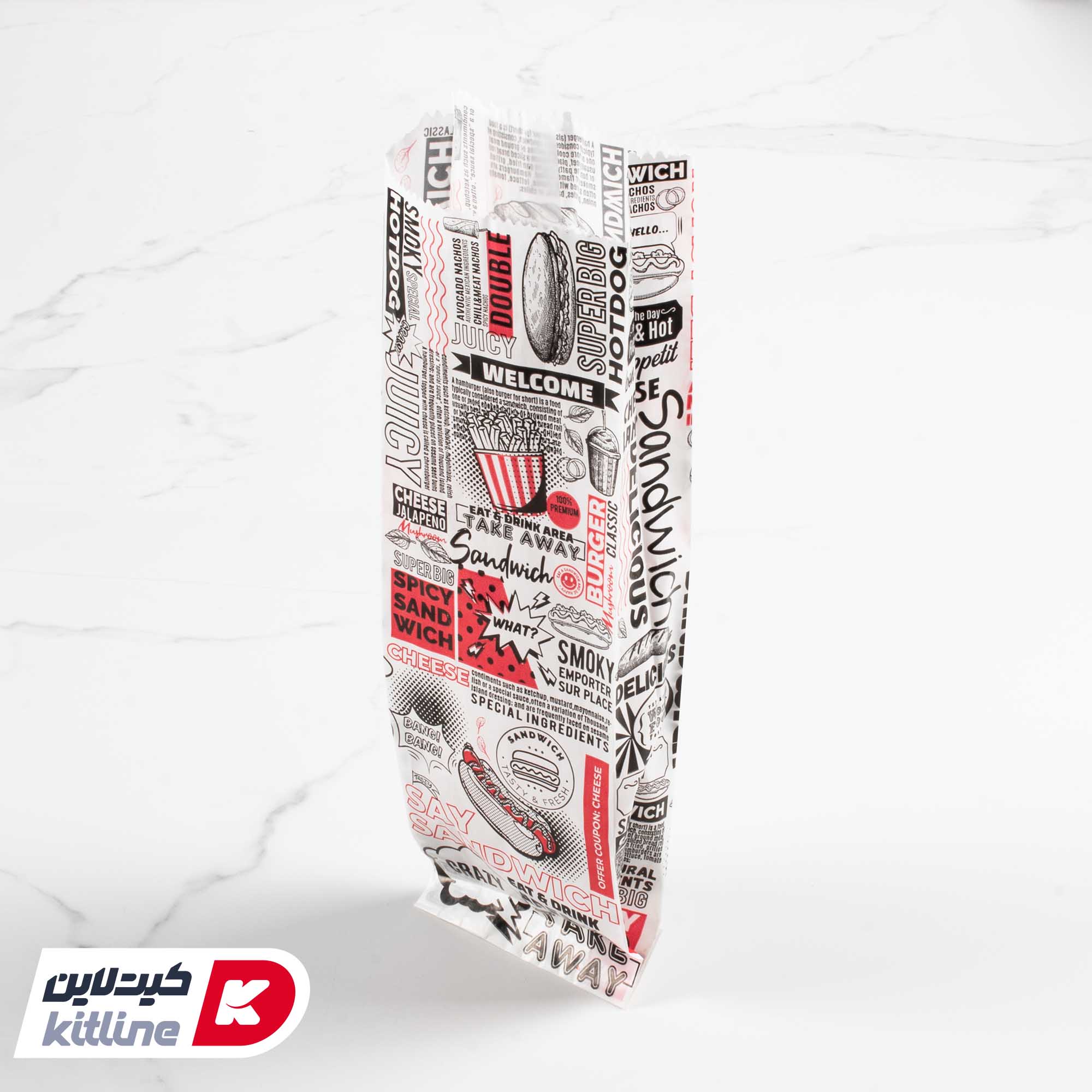 پاکت ساندويچ یکبار مصرف مومی ۹×۳۰ سانتیمتری روزنامه ای (کارتن ۲۵۰۰ عدی)