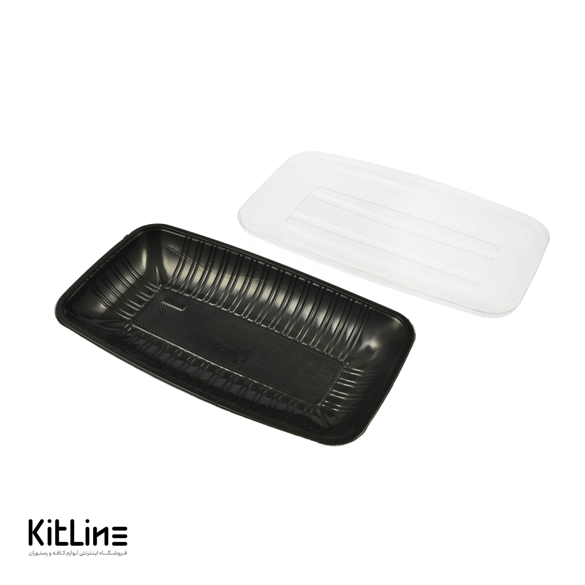 دیس یکبار مصرف ۴×۲۰×۳۶ سانتیمتری مشکی همراه درب (کارتن ۲۰۰ عددی)