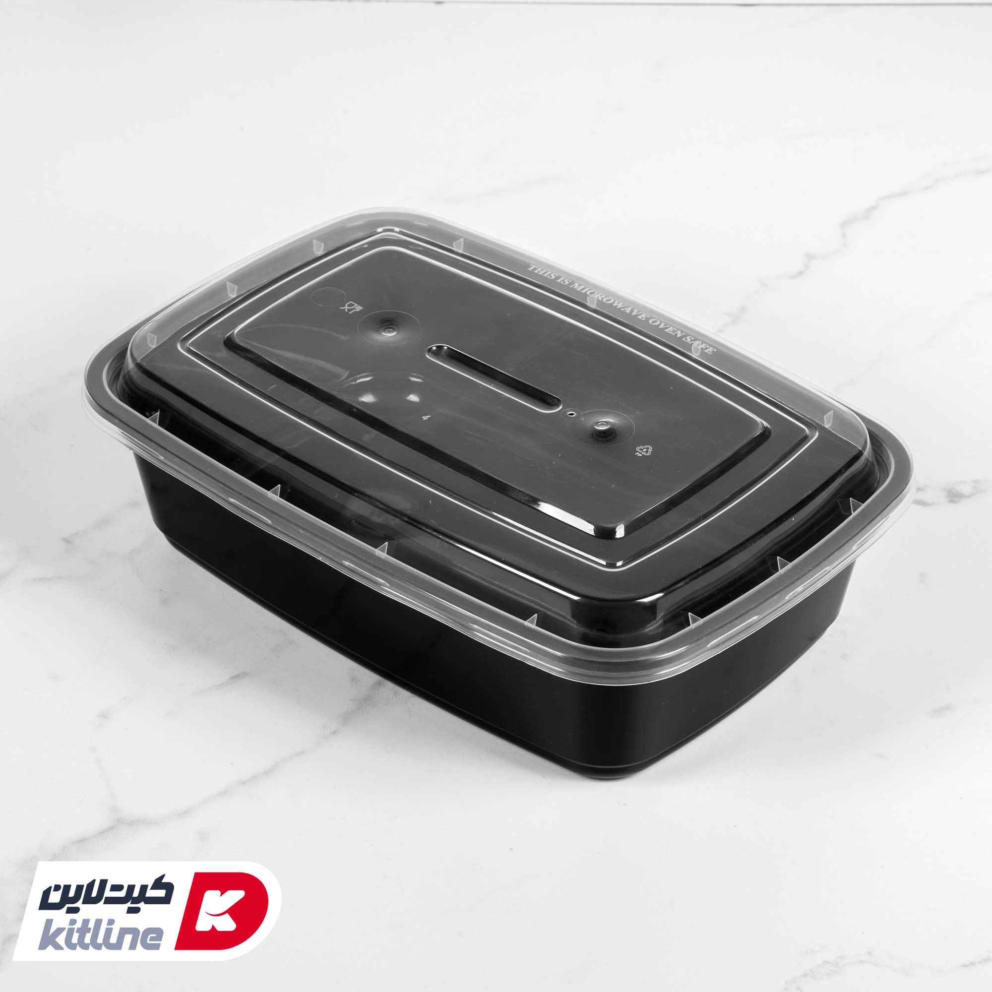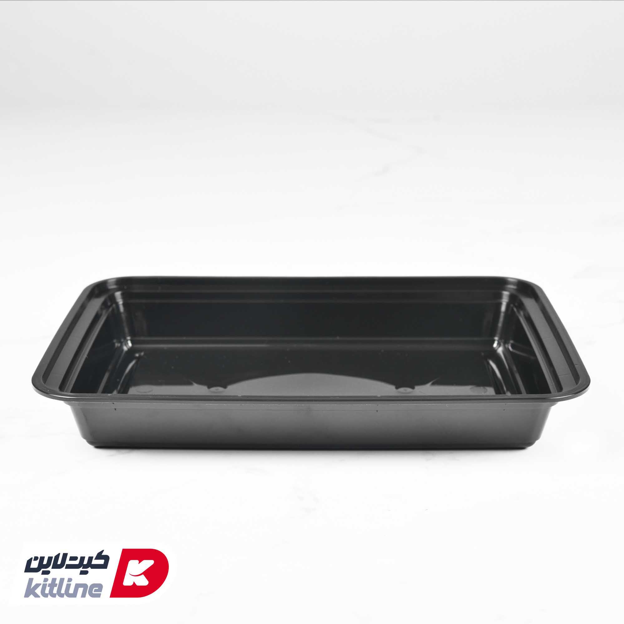 ظرف یکبار مصرف ۲۸.۵×۲۱.۵ سانتیمتری مشکی همراه درب شفاف (کارتن ۱۵۰ عددی)