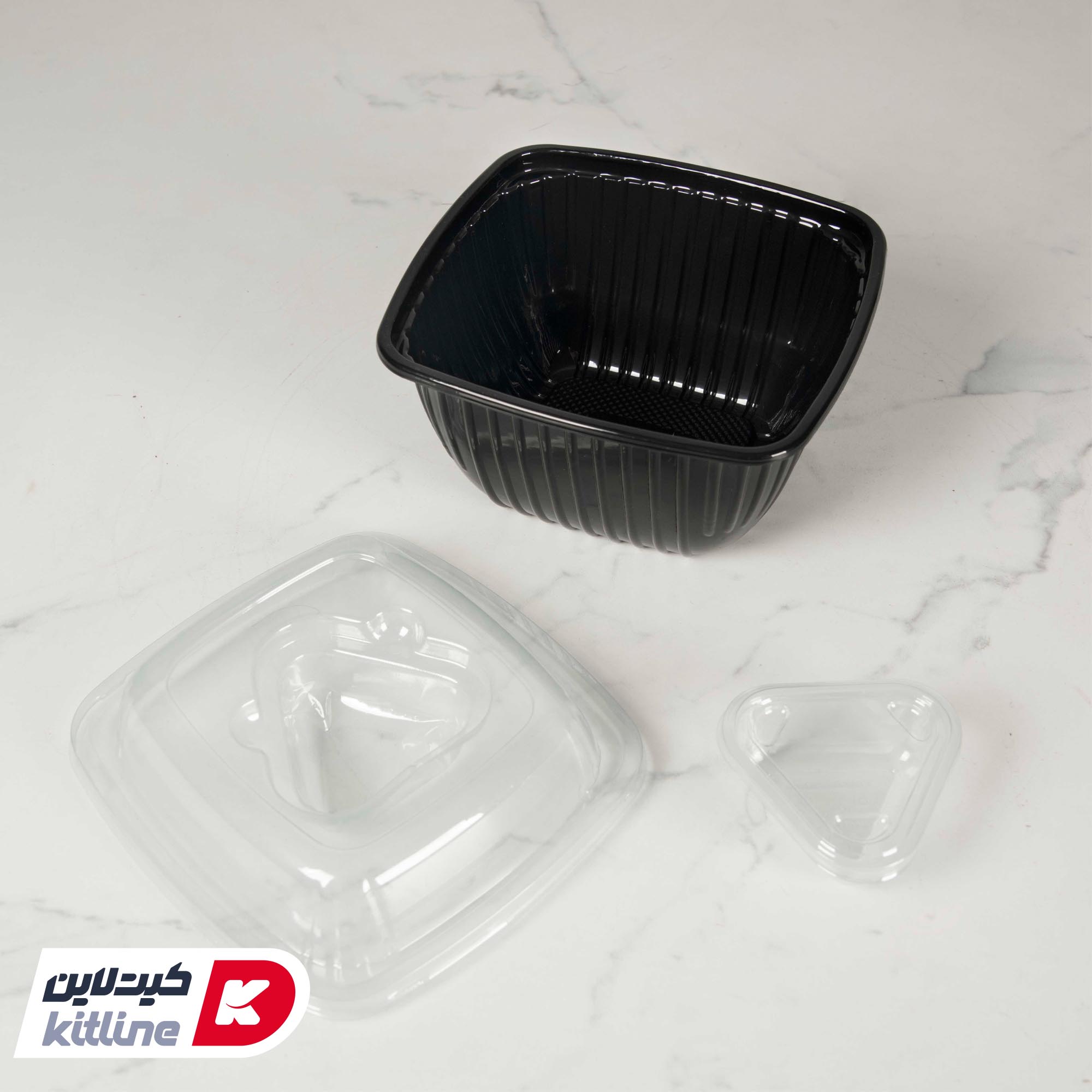 ظرف یکبار مصرف ۱۵.۵×۱۶.۵ سانتیمتری مشکی همراه درب شفاف و سس کاپ (کارتن ۲۰۰ عددی)