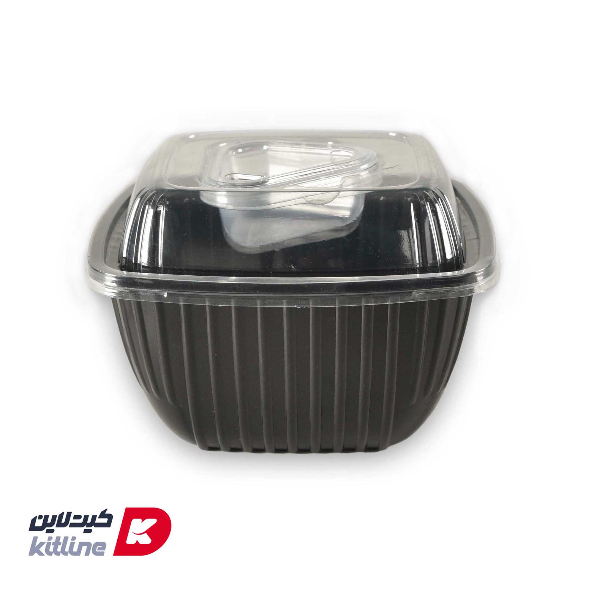 ظرف یکبار مصرف ۱۵.۵×۱۶.۵ سانتیمتری مشکی همراه درب شفاف و سس کاپ (کارتن ۲۰۰ عددی)