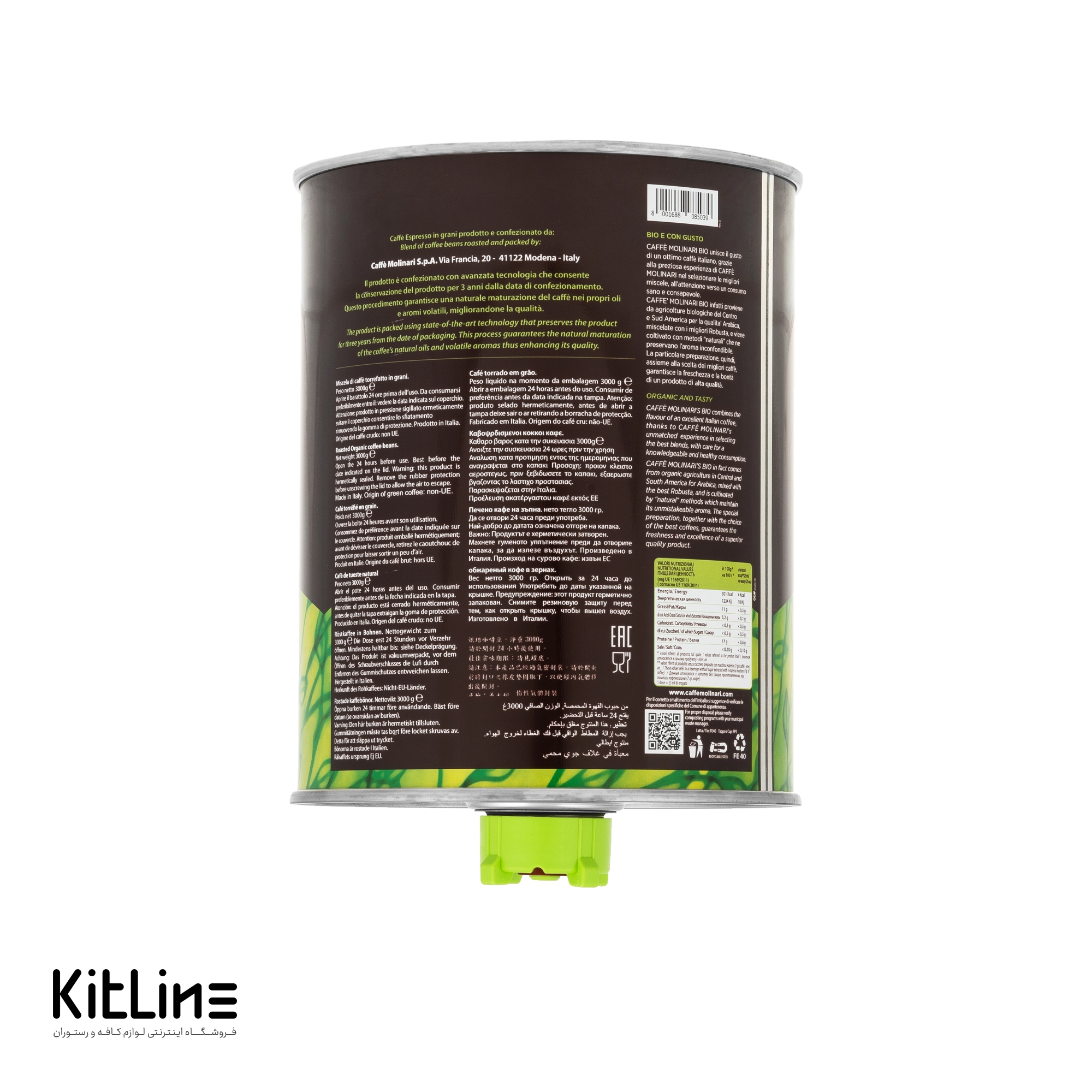 دانه قهوه ۸۰٪ عربیکا ۲۰٪ روبوستا تاپ بلند بایو مولیناری ۳ کیلوگرمی