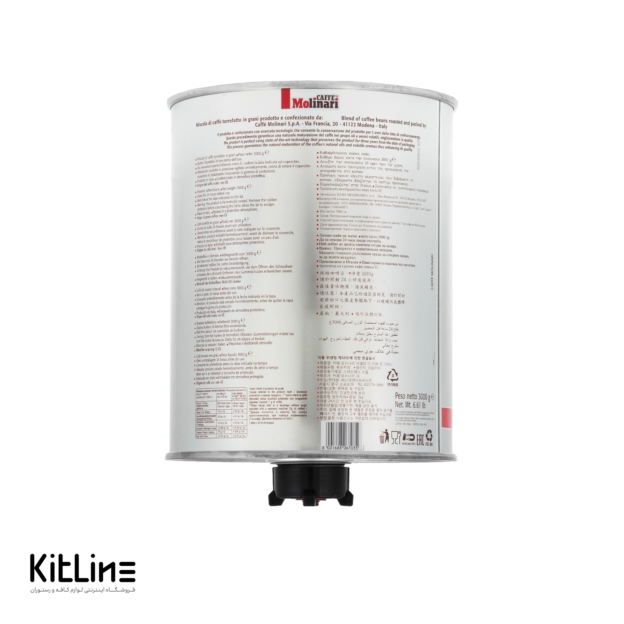 دانه قهوه ۱۰۰٪ عربیکا مولیناری ۳ کیلوگرمی