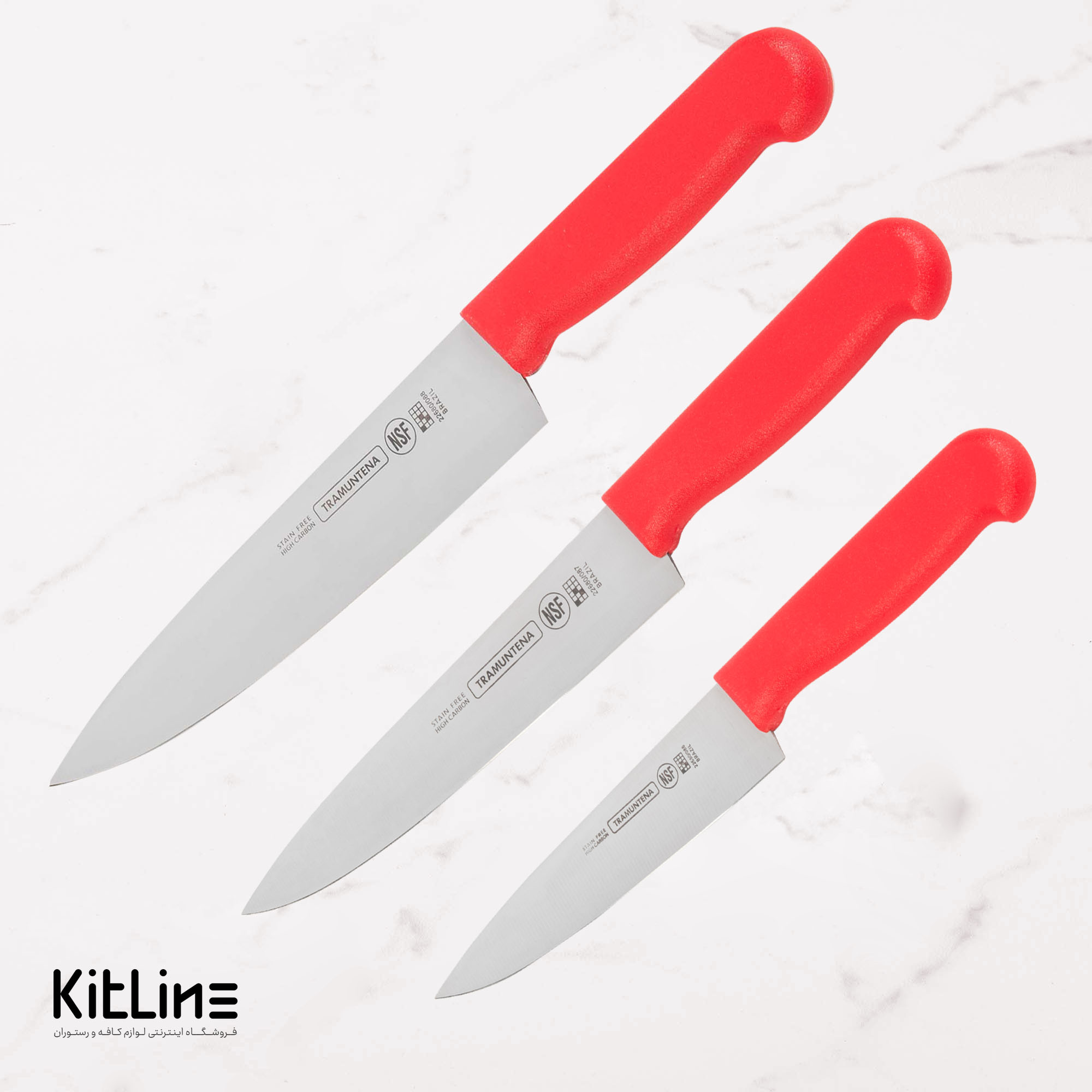 ست ۳ عددی چاقو سرآشپز بداف دسته قرمز (TRAMUNTENA)