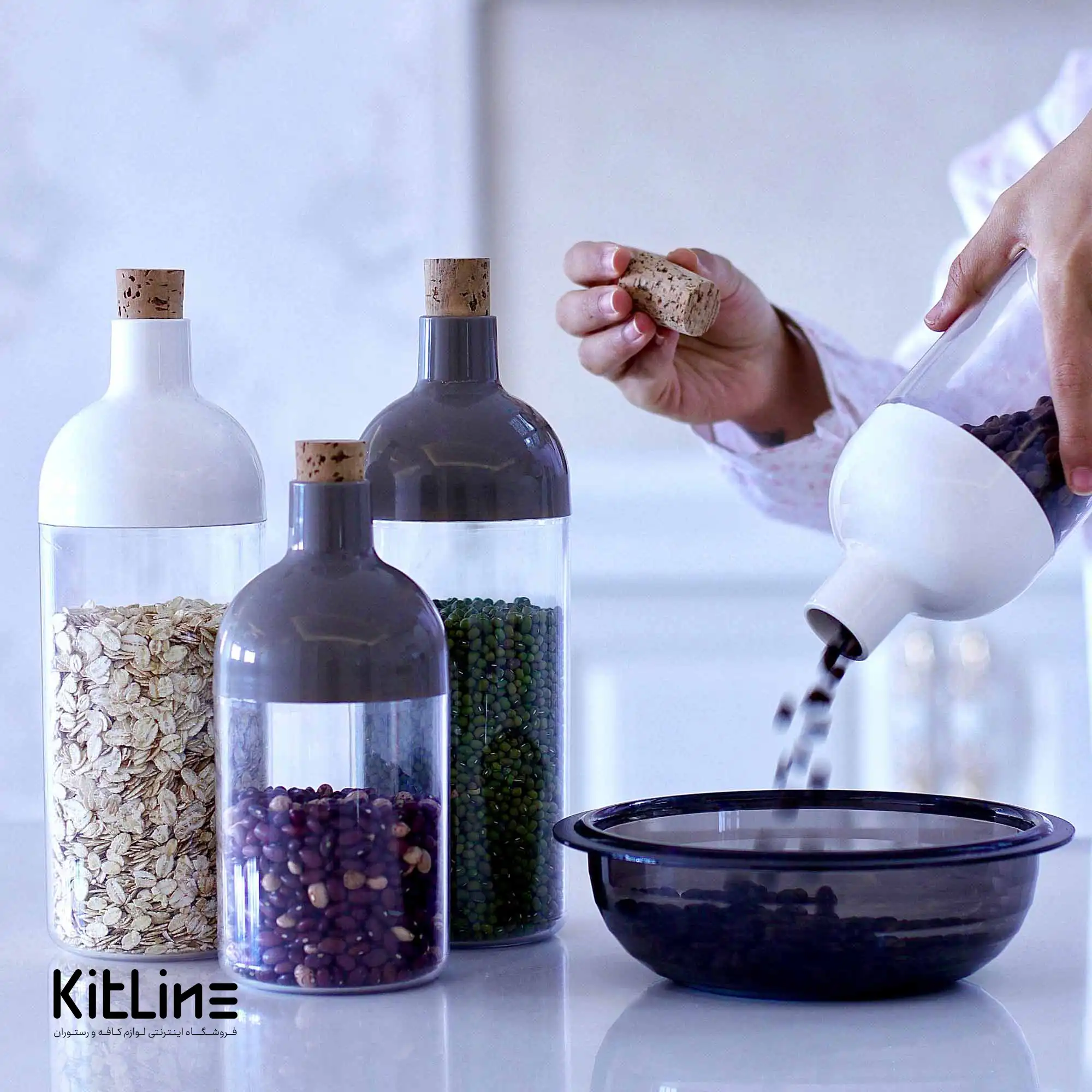 بانکه پلاستیکی ۹۰۰ میلیلیتری سفید با درب چوب پنبه بیسه (Biesse)
