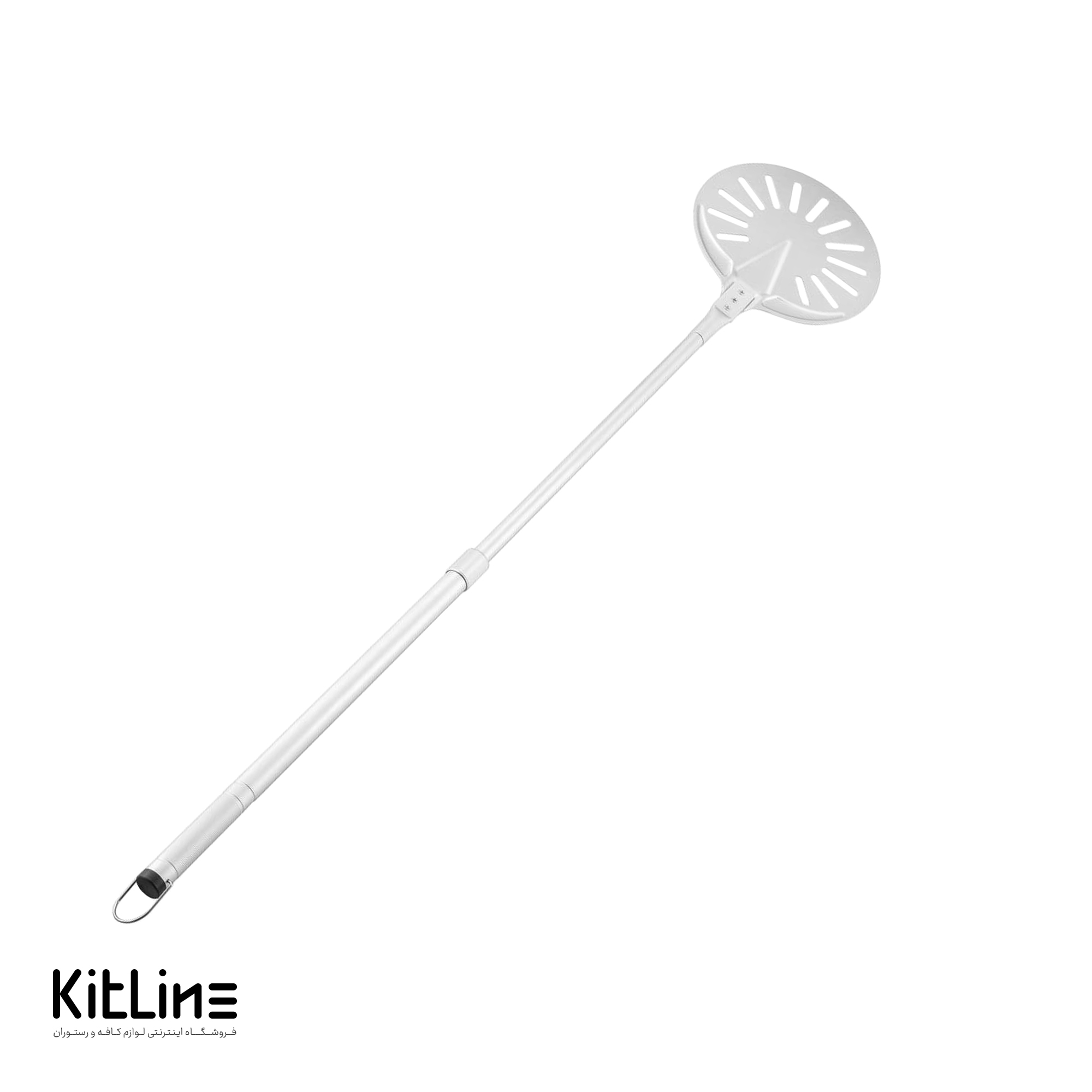 پارو پیتزا پانچ آلومینیومی گرد کف ۳۷، دسته ۱۲۰ سانتیمتر کیچن تک
