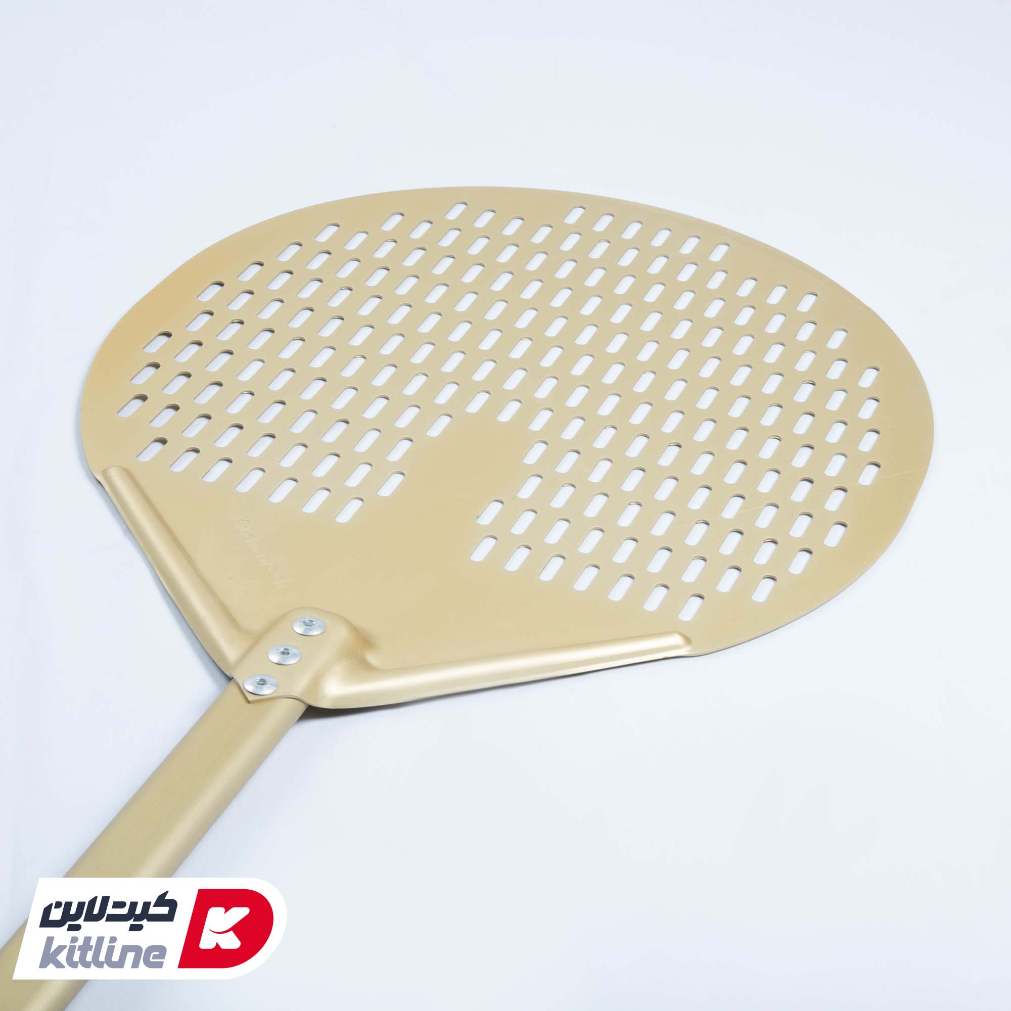 پارو پیتزا طلایی پانچ آلومینیومی گرد کف ۳۲، دسته ۱۲۰ سانتیمتر کیچن تک