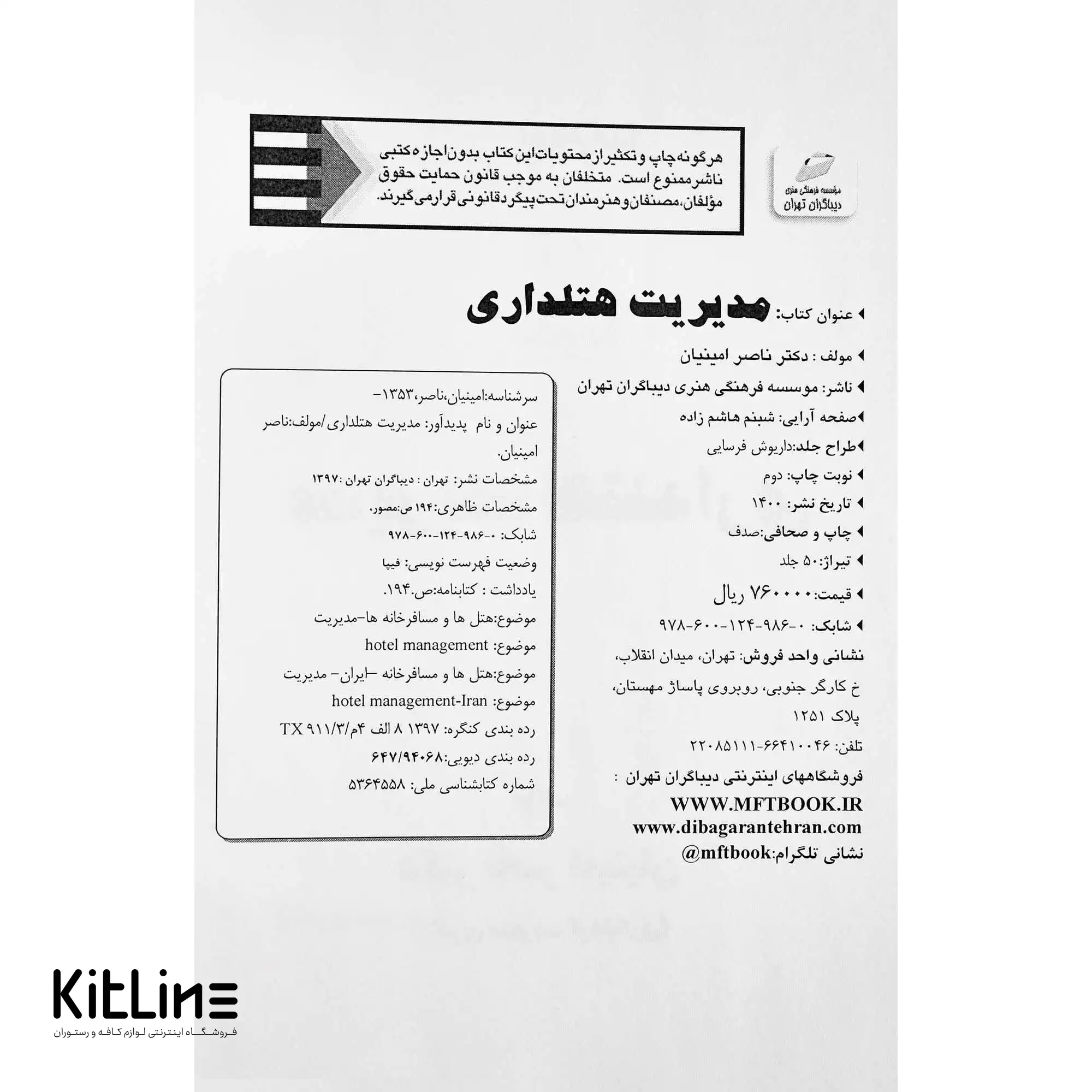 کتاب مدیریت هتلداری اثر دکتر ناصر امینیان