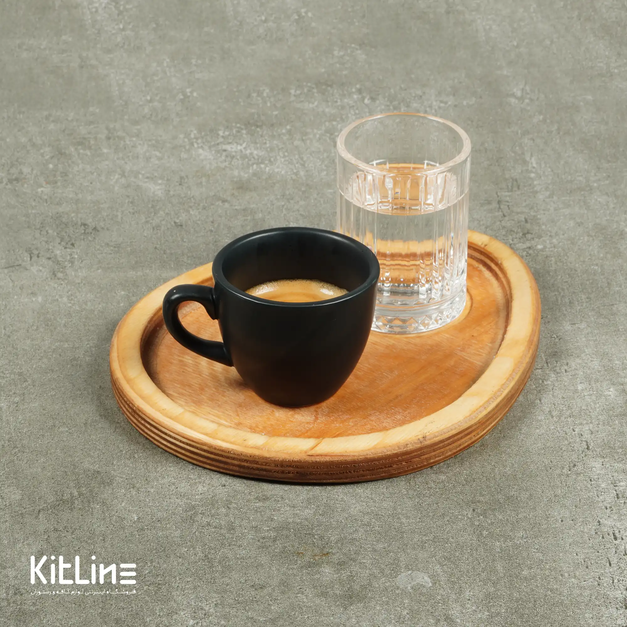 لیوان شیشه ای ۲۴۰ میلیلیتری دسته فلزی بورمیولی به همراه تخته سرو چوبی