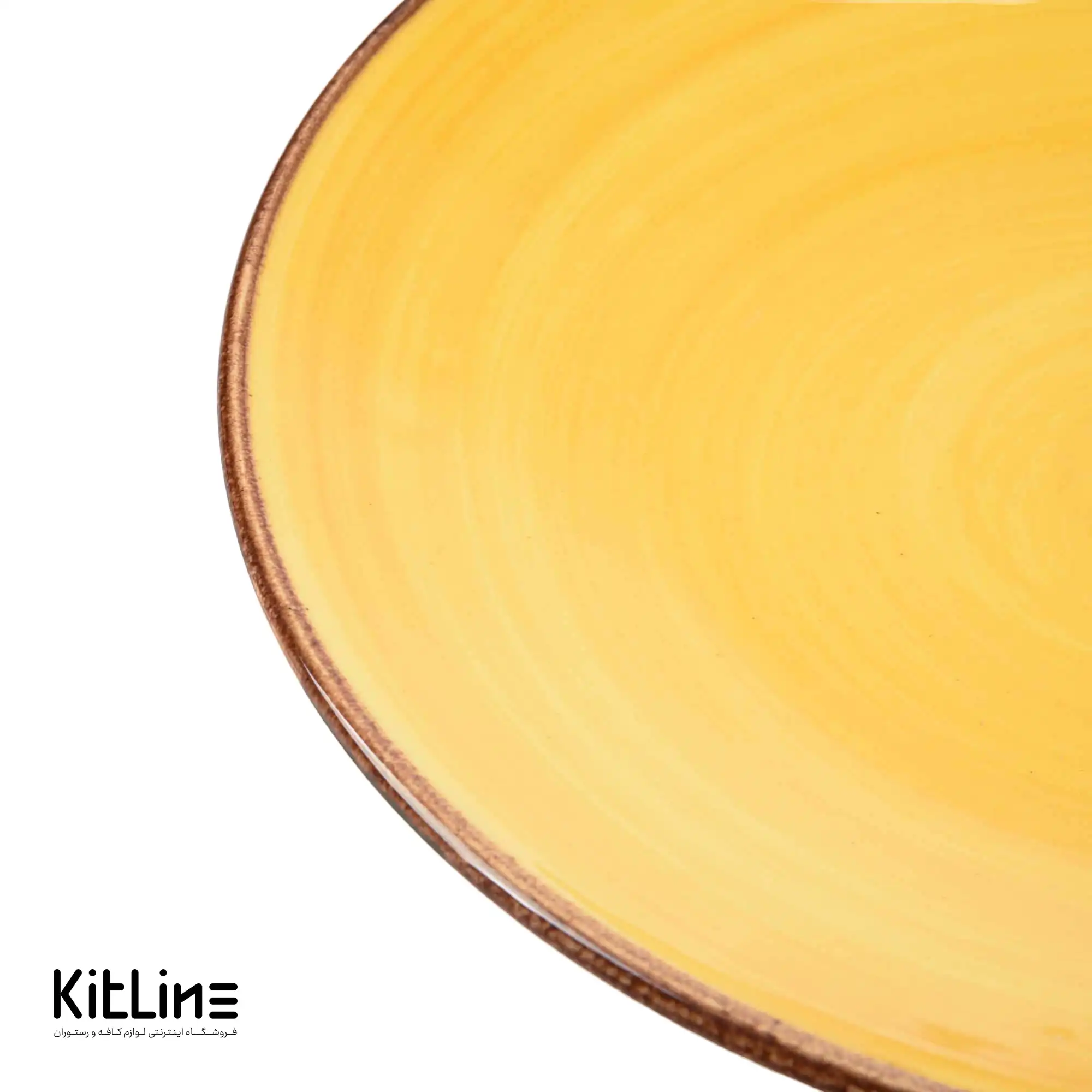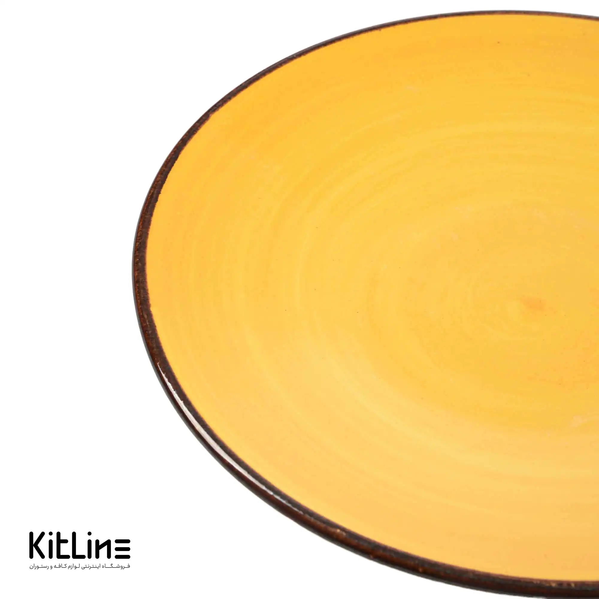 بشقاب تخت سرامیکی ۲۵ سانتیمتری زرد نارنجی باند دار