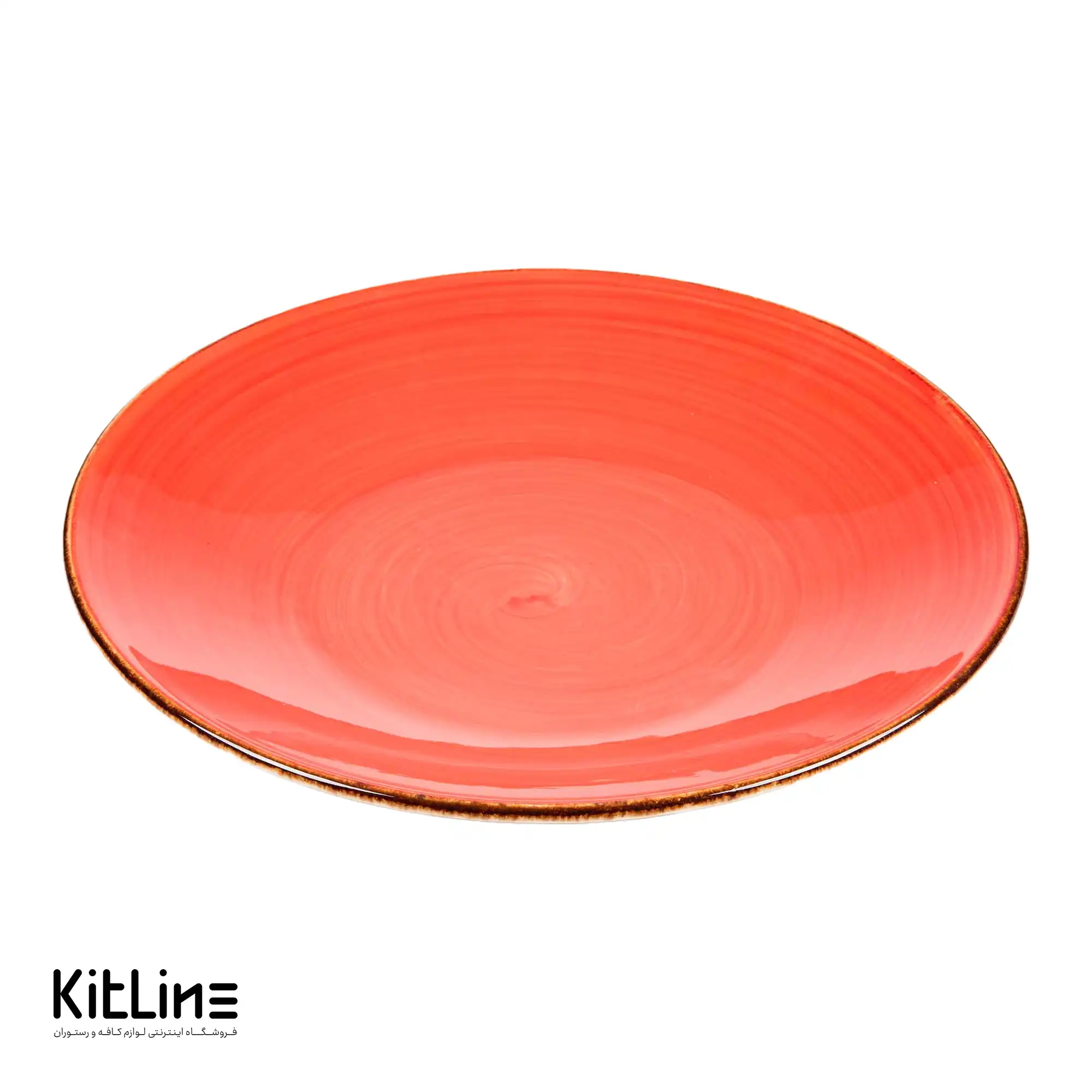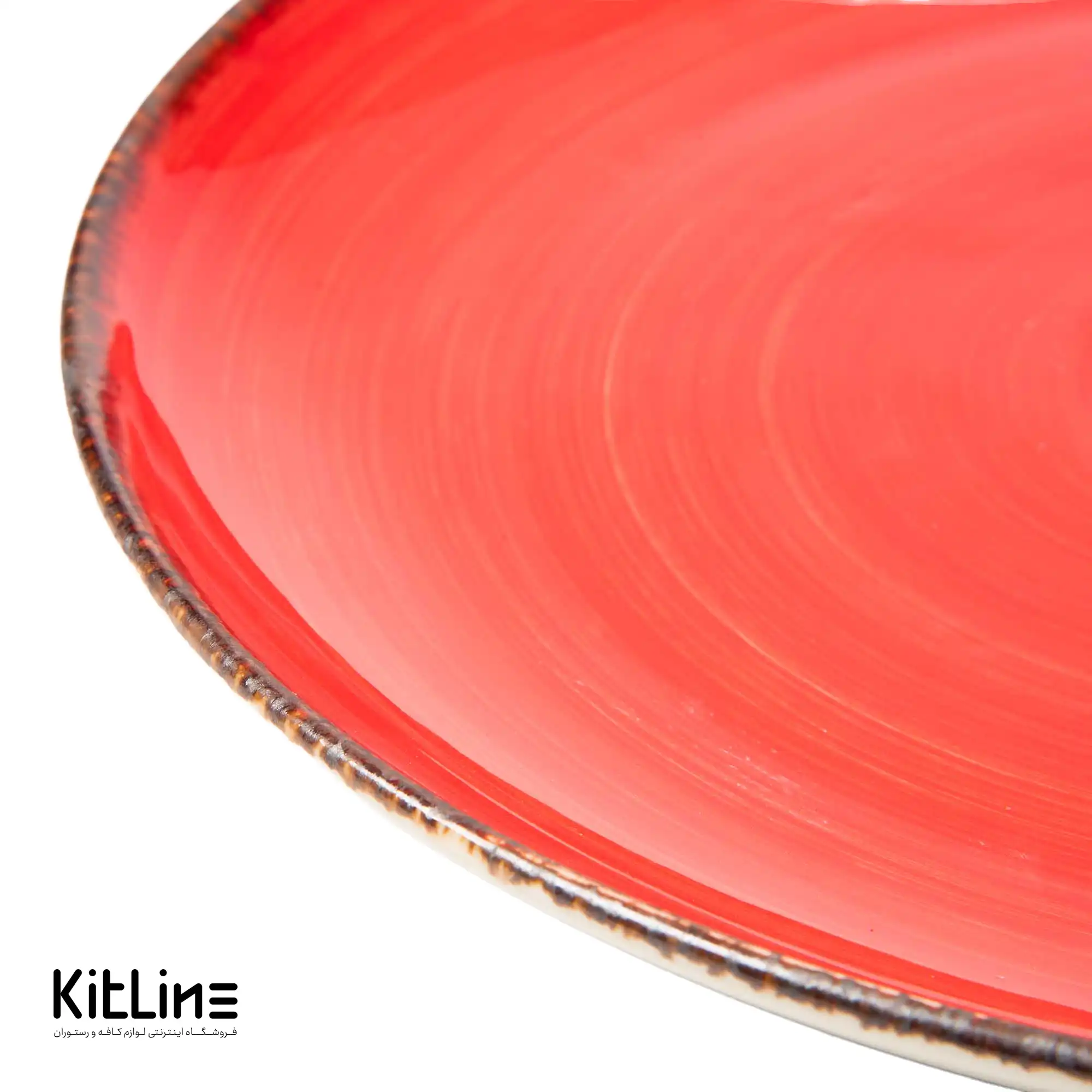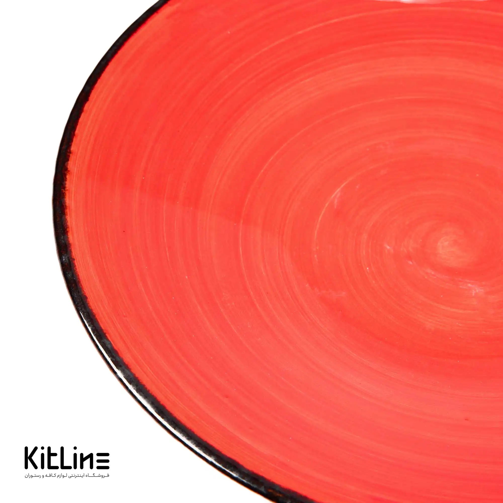 بشقاب تخت سرامیکی ۲۵ سانتیمتری قرمز باند دار