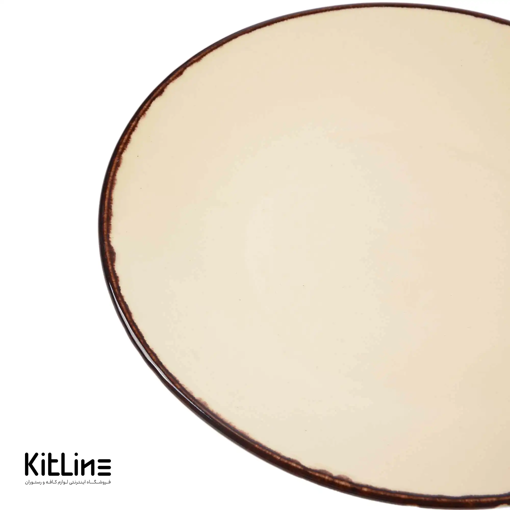 بشقاب تخت سرامیکی ۲۵ سانتیمتری کرم باند دار