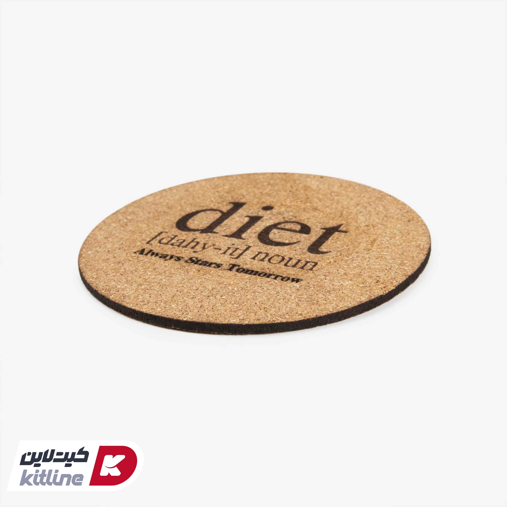 زیر لیوانی چوب پنبه ای ۱۰ سانتیمتری گرد طرح diet (ست ۵ عددی)