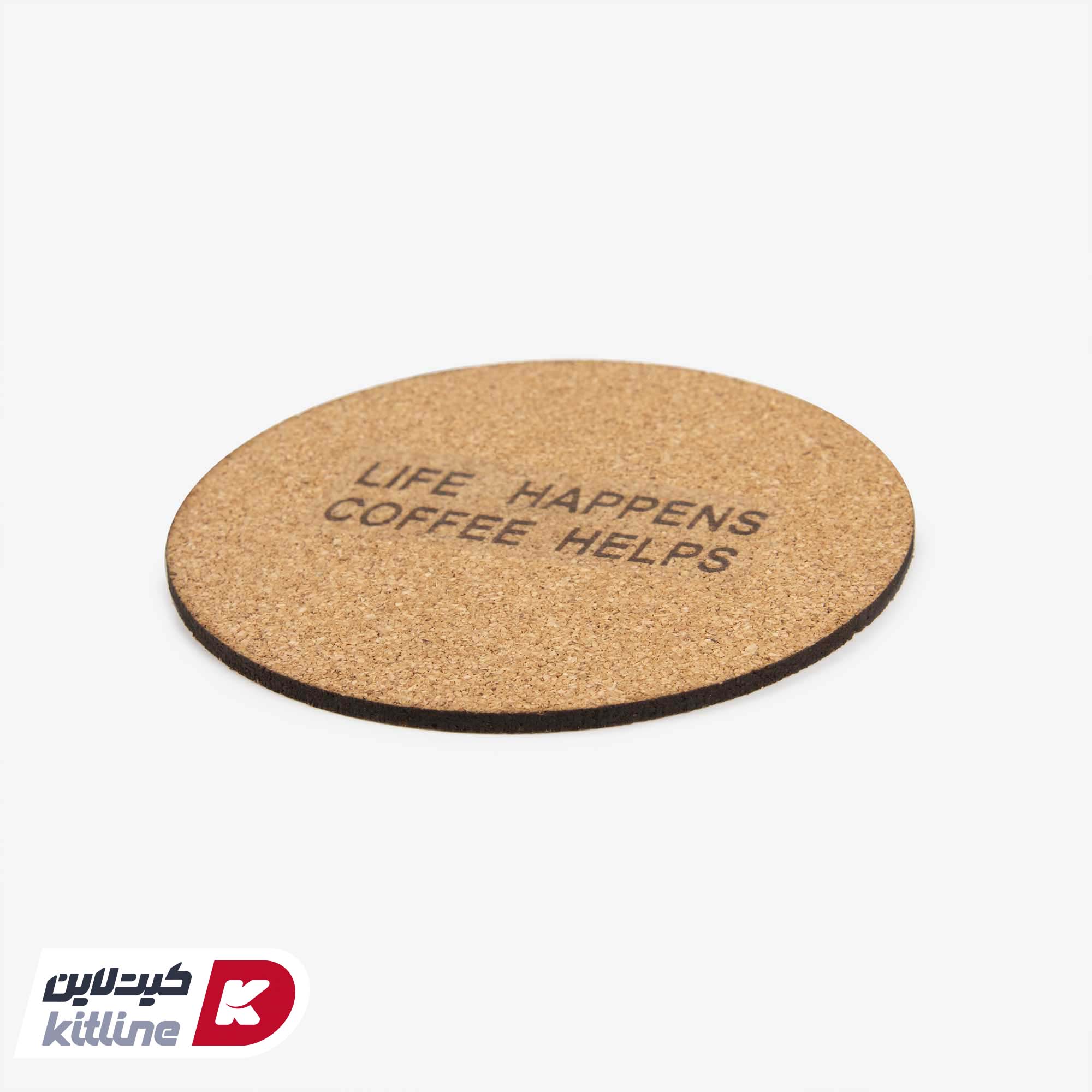زیر لیوانی چوب پنبه ای ۱۰ سانتیمتری گرد طرح LIFE (ست ۵ عددی)