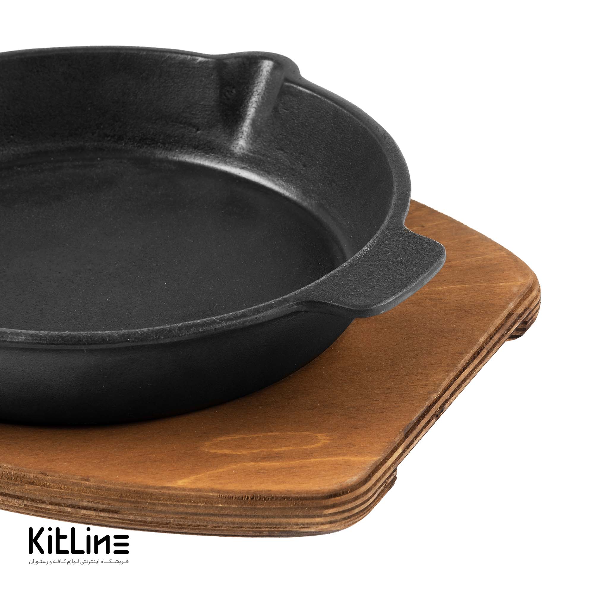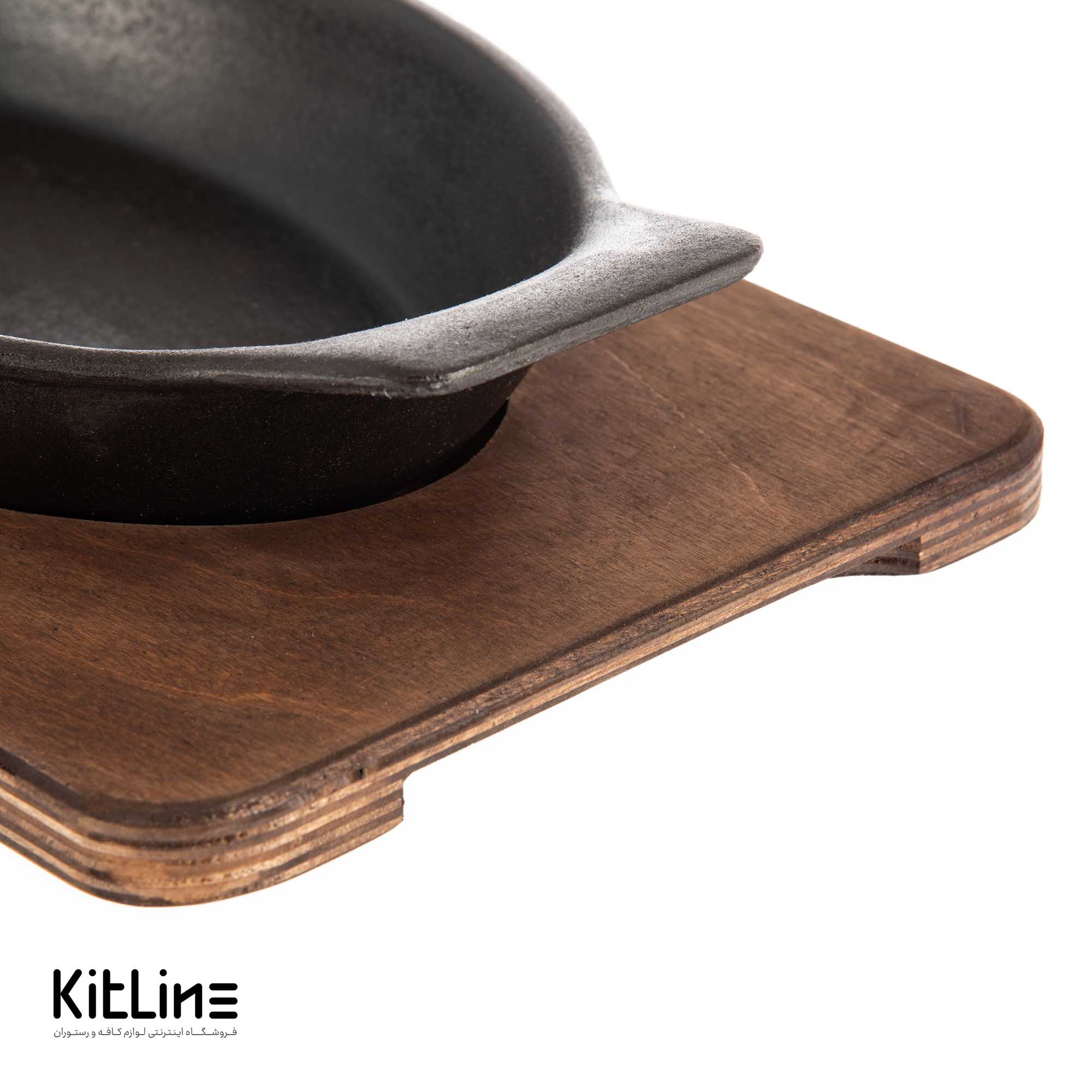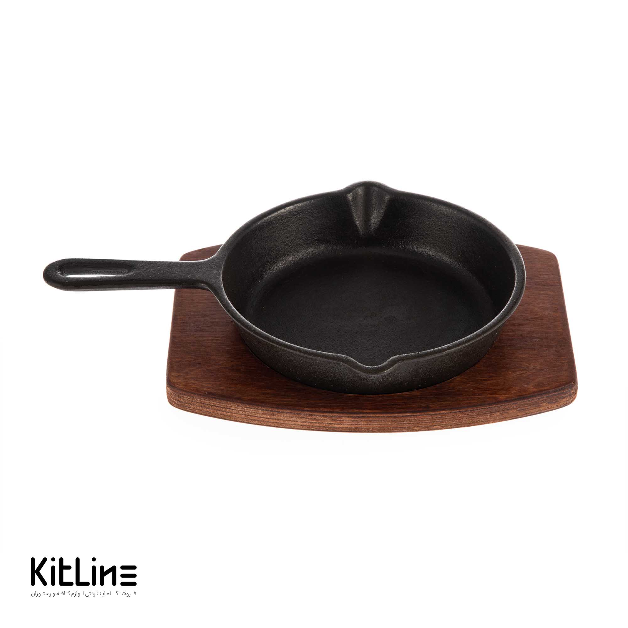 تابه چدنی ۱۵ سانتیمتری تک دسته به همراه زیره چوبی