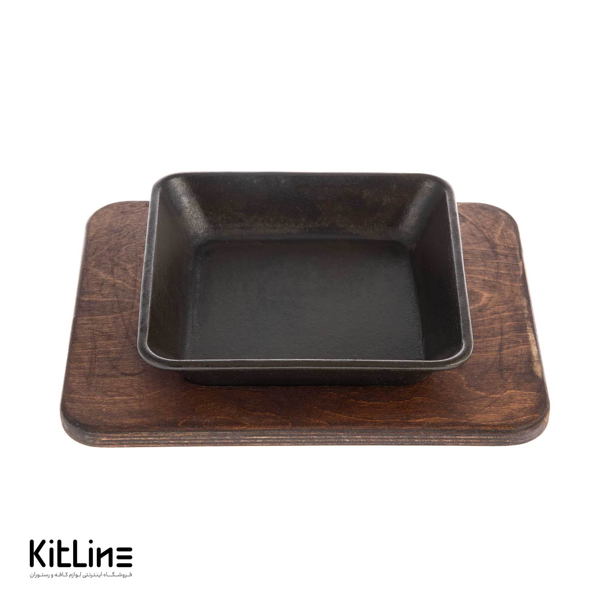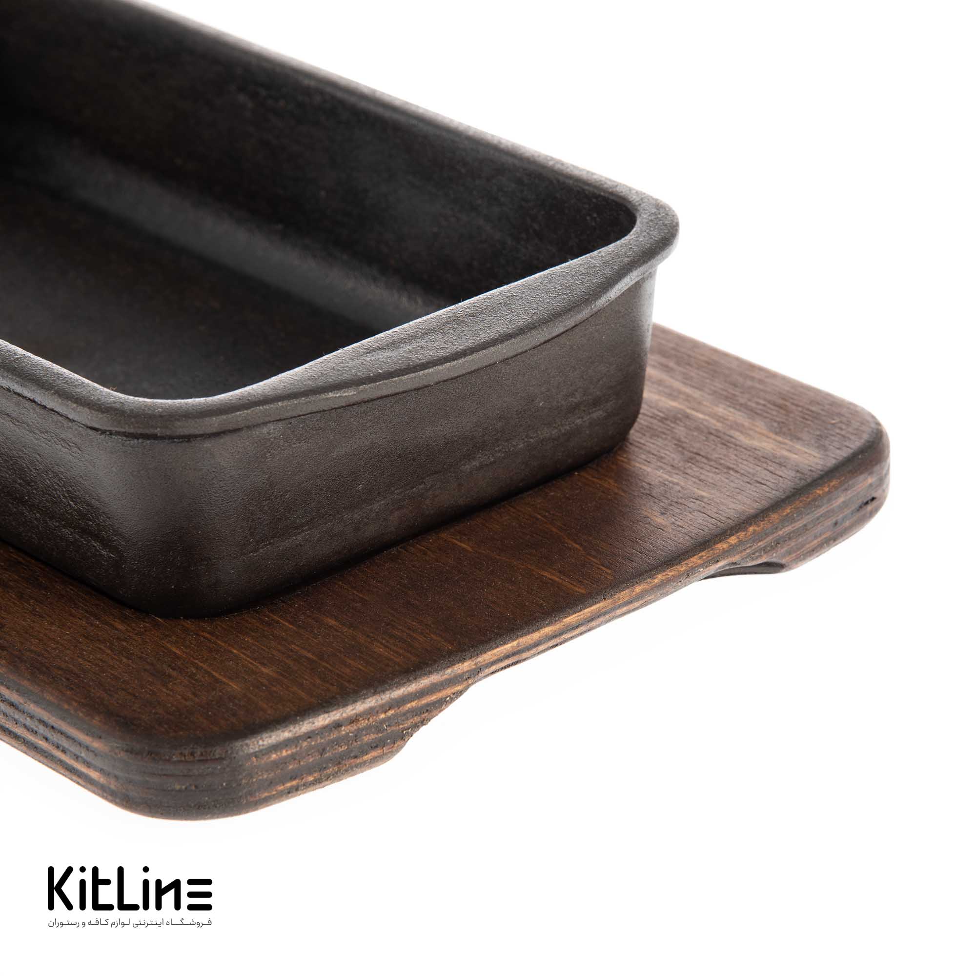 ظرف چدنی مستطیلی ۱۲×۲۴ سانتیمتری به همراه زیره چوبی
