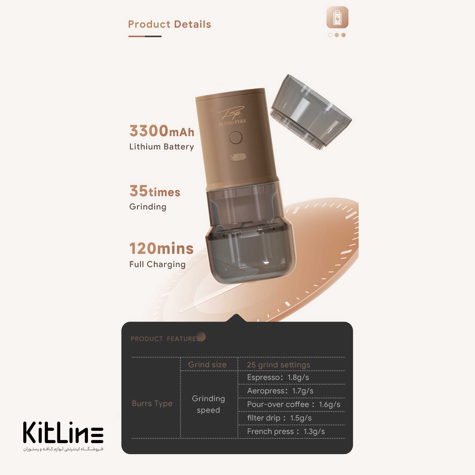 قابلیت ۳۵ بار آسیاب با هر شارژ