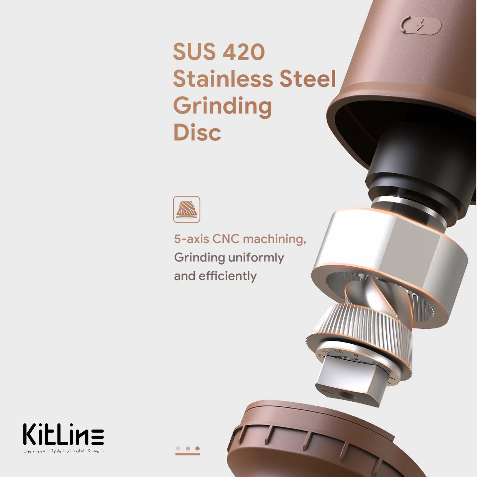 صفحه ی آسیاب SUS 420 دارای 5 محور به منظور آسیاب یکدست و کارآمد قهوه و دارای طول عمر بالا