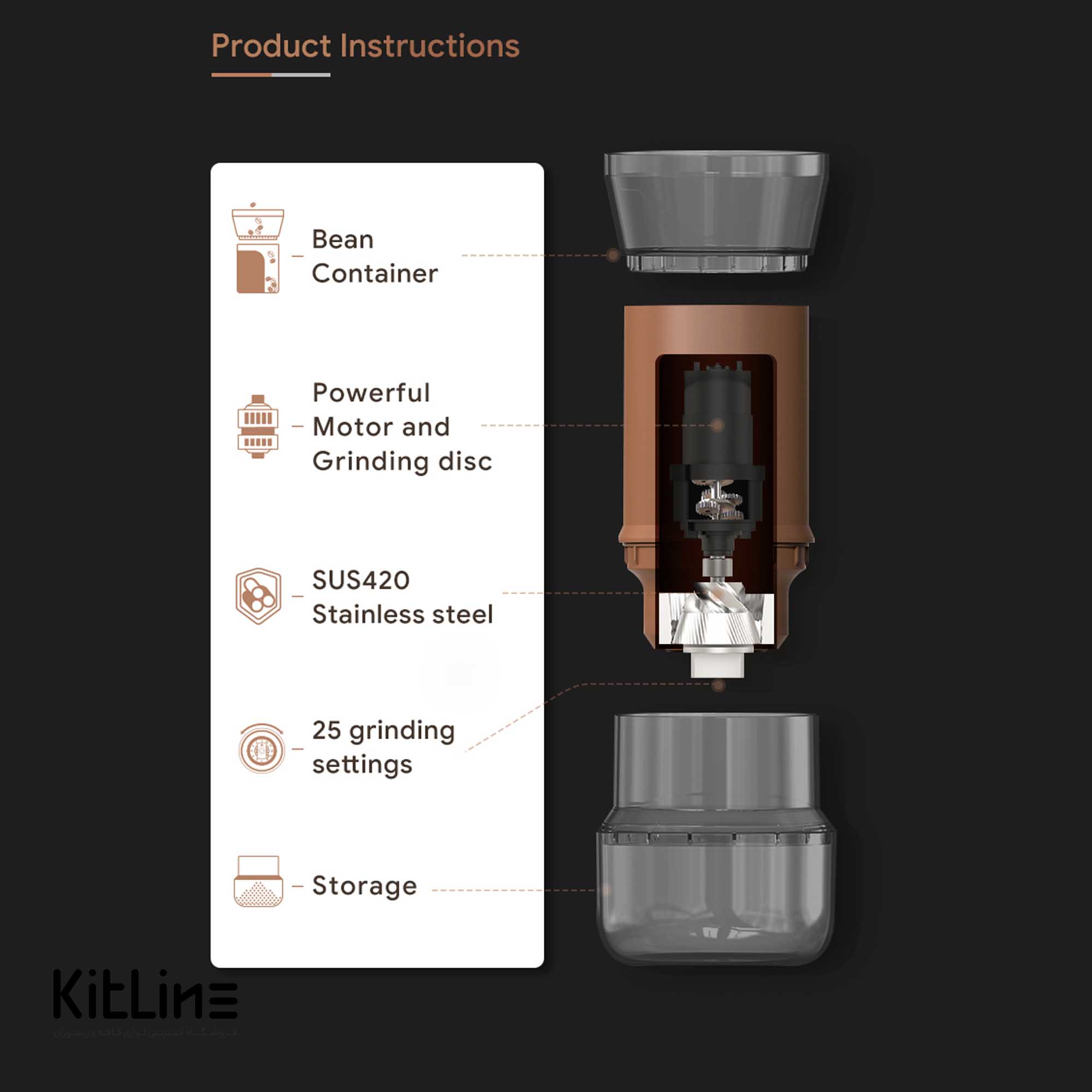 دارای تنظیمات ۲۵ نوع آسیاب