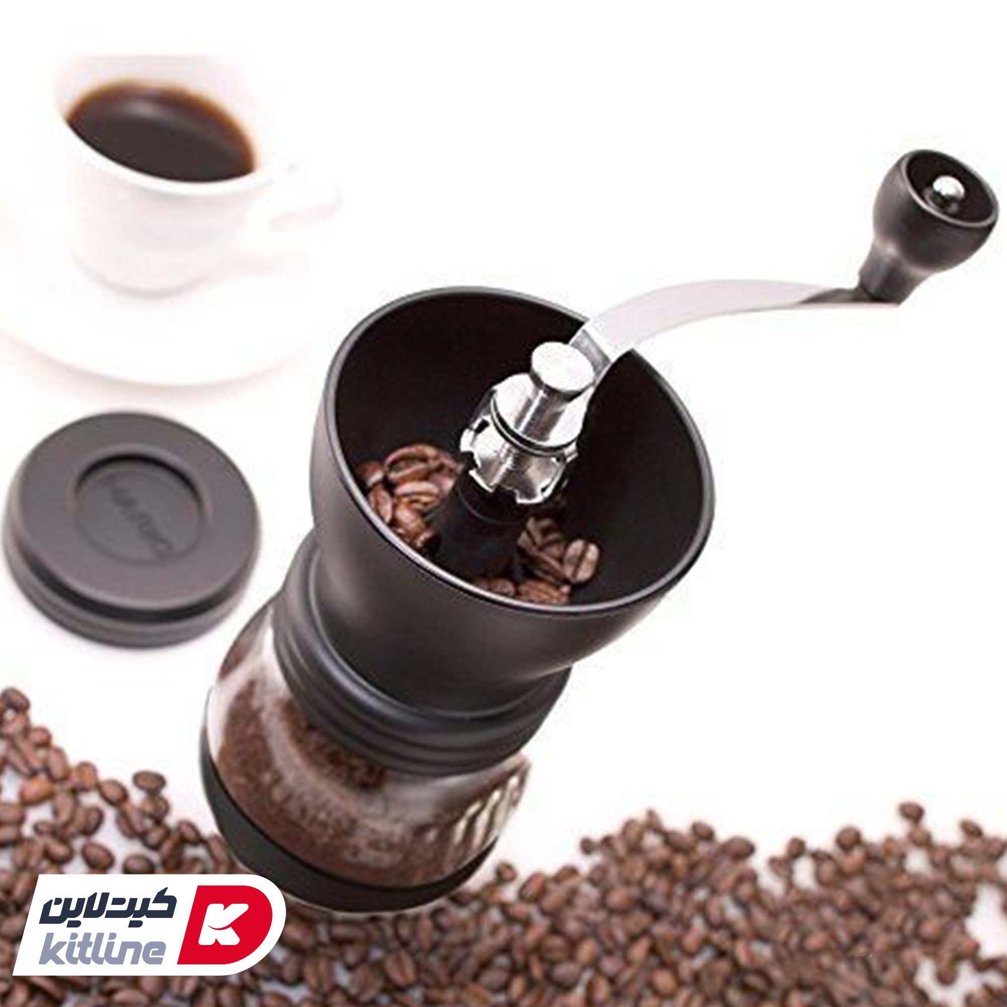 حفظ تازگی و عطر قهوه ارتباط مستقیمی با زمان آسیاب شدن دانه های قهوه دارد. طعم اسپرسو با قهوه تازه آسیاب شده بسیار متفاوت خواهد بود. استفاده از آسیاب قهوه دستی کمک می کند تا برای هر بار استفاده به اندازه نیاز، دانه قهوه آسیاب شود. این آسیاب دستی دارای قابلیت تنظیم درجه آسیاب شدن دانه ها می باشد. بدین ترتیب میزان درشتی و ریزی قهوه آسیاب شده قابل تنظیم است. دانه های قهوه را در محفظه بالایی ریخته و پس از تنظیم با چرخاندن اهرم به اندازه دلخواه شما، دانه قهوه آسیاب می شود. تیغه سرامیکی این آسیاب باعث می شود تا قهوه یکدست و بهتر آسیاب شود و در عطر و بوی آن تغییری ایجاد نشود. پس از آسیاب برای نگهداری قهوه می توان آن را را داخل ظرف شیشه ای درب دار ریخت و برای تمیز کردن تیغه بهتر است از قلموی خود آسیاب استفاده شود. با استفاده از این ابزار می توانیم دانه های قهوه را مناسب:موکوپات (قهوه جوش روی گازی)،دستگاه اسپرسو، فرنچ پرس، کمکس، آئروپرس (کلا قهوهای دمی )آسیاب کنیم.