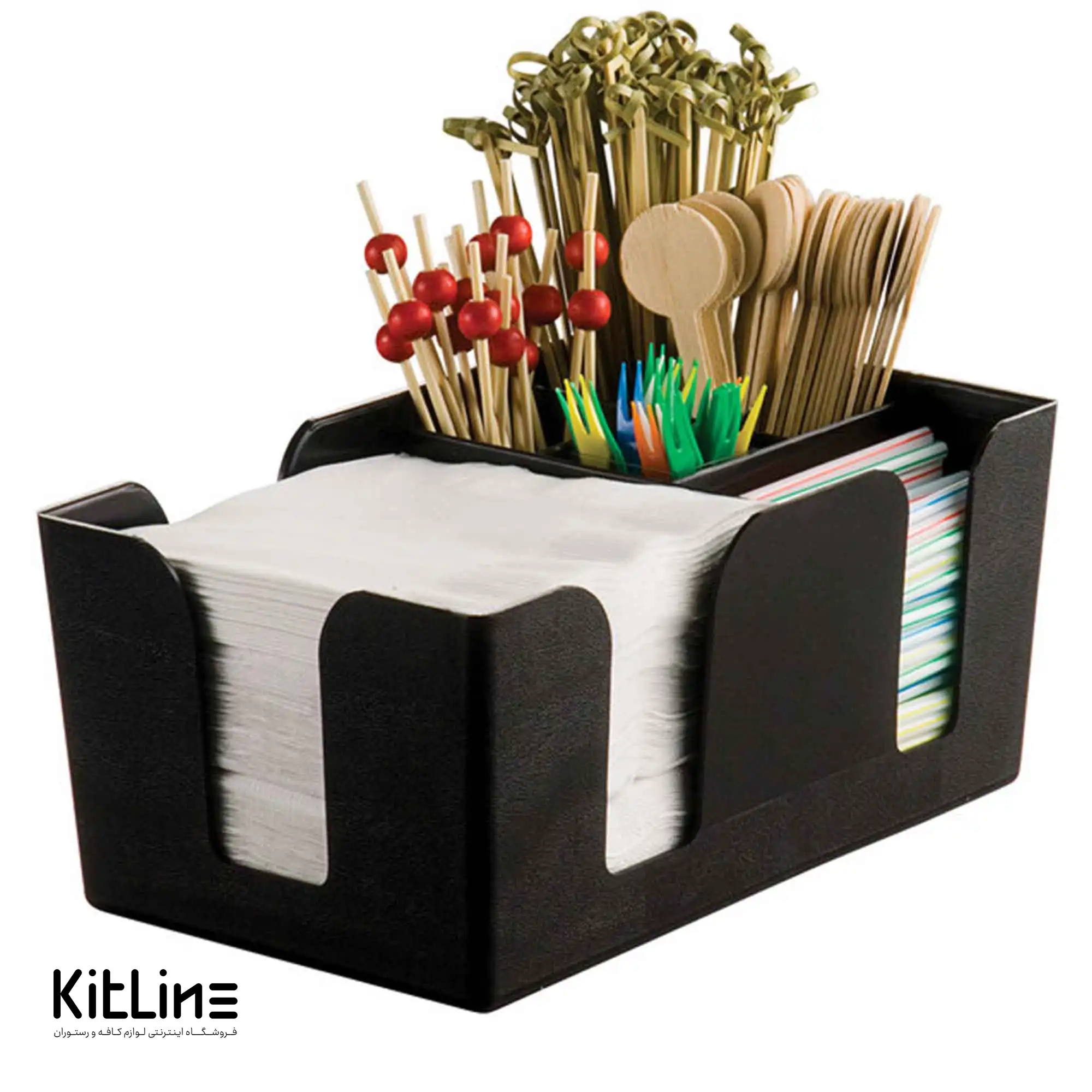 - طراحی ۳ خانه: شامل سه محفظه با اندازههای مختلف که بهطور ویژه برای نگهداری دستمالهای تا شده، نیها، قاشقهای یکبار مصرف، ساشههای نمک و فلفل و دیگر ابزارهای بار طراحی شدهاند.
