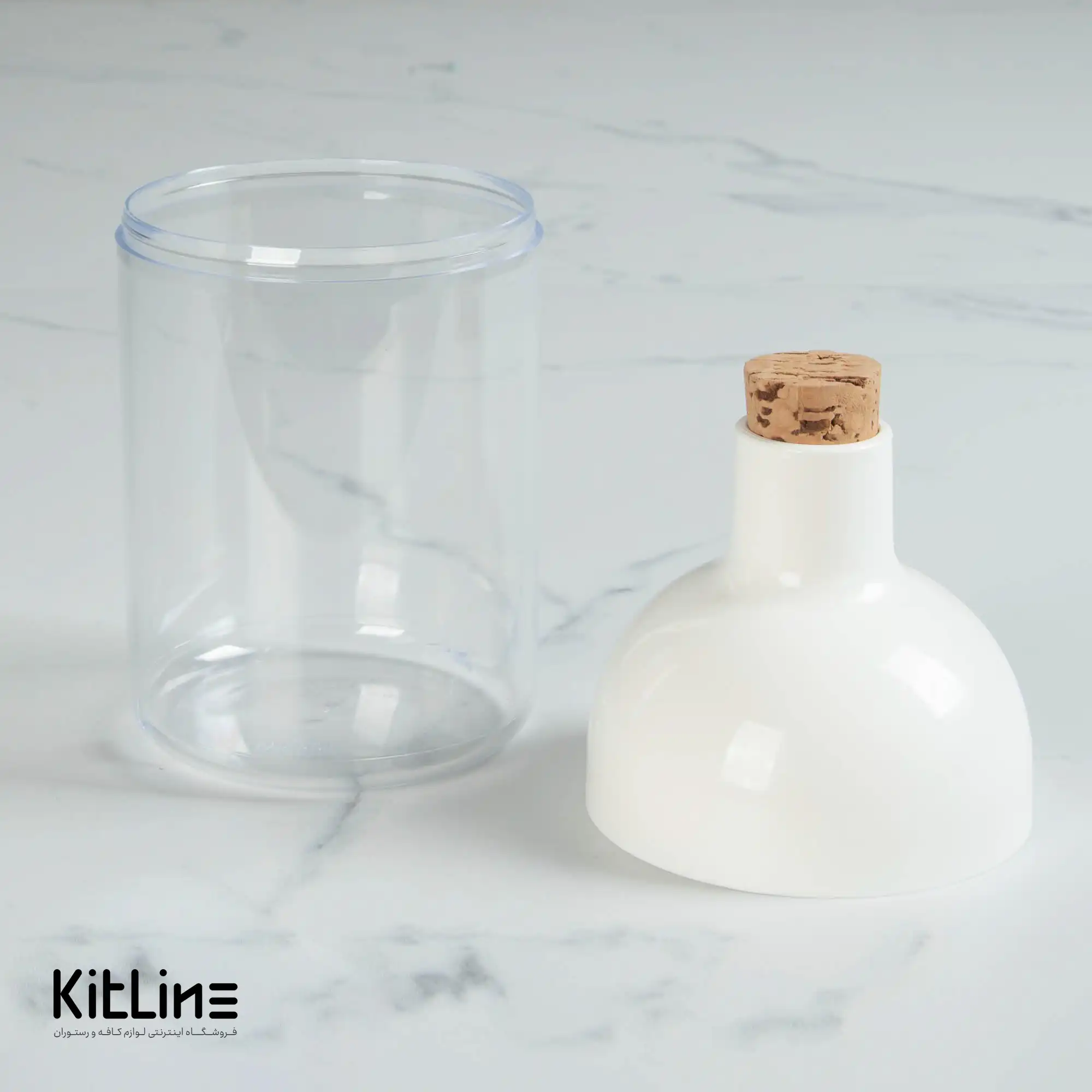 بانکه پلاستیکی ۶۰۰ میلی‌لیتری سفید با درب چوب پنبه بیسه (Biesse)