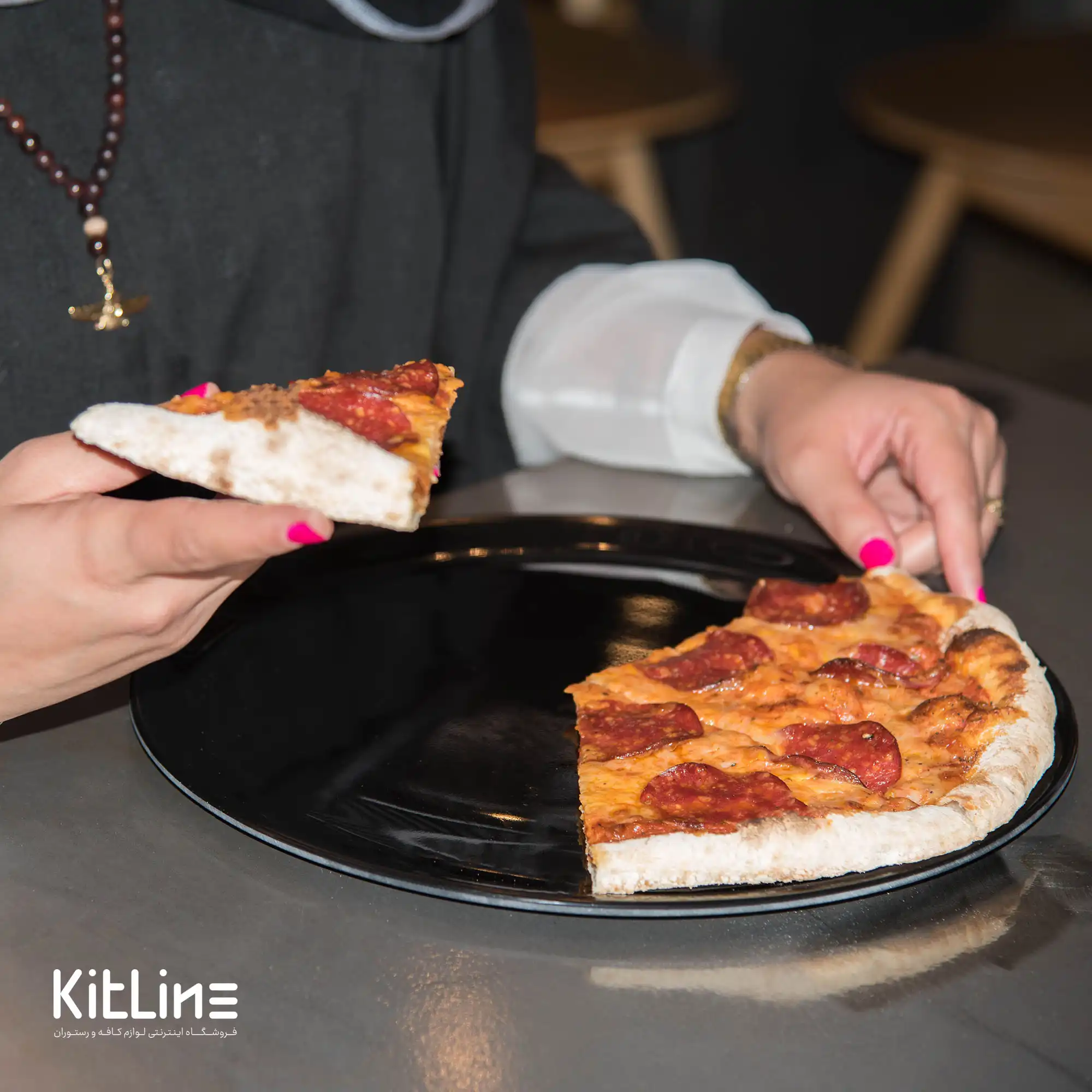 این بشقاب ملامین مشکی رنگ با قطر ۳۲ سانتیمتر برای سرو پیتزا، سالاد، دسر، استیک، غذاهای برنجی و … مناسب هستند. این محصول برند کیچن تک kitchentech می باشد.