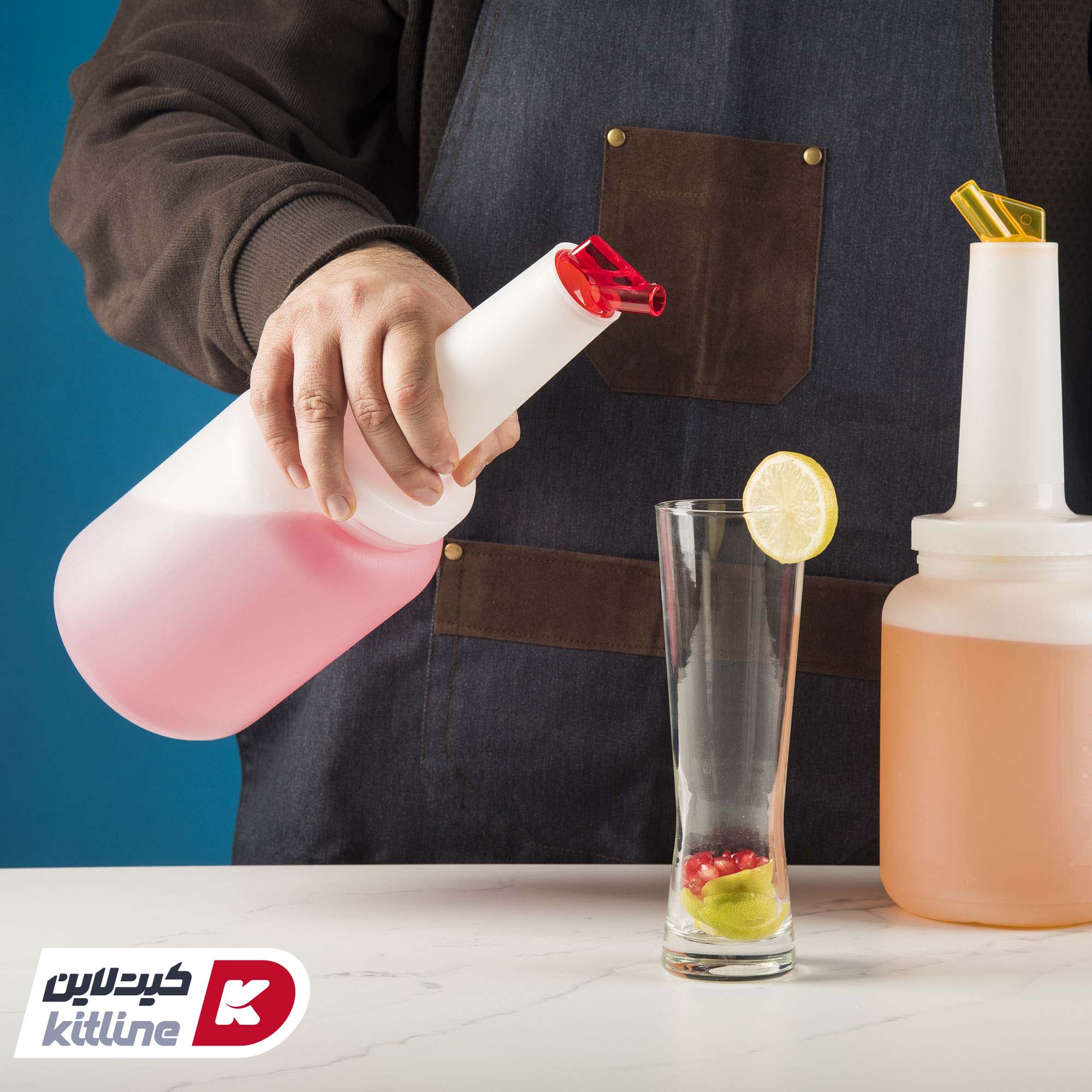 بطری با درب آسان ریز که از لوازم آشپزخانه است، به ما کمک میکند مایعاتی مانند آبلیمو، شربتها و عصارهها را با کمترین خطا به ظروف دیگر منتقل نماییم.