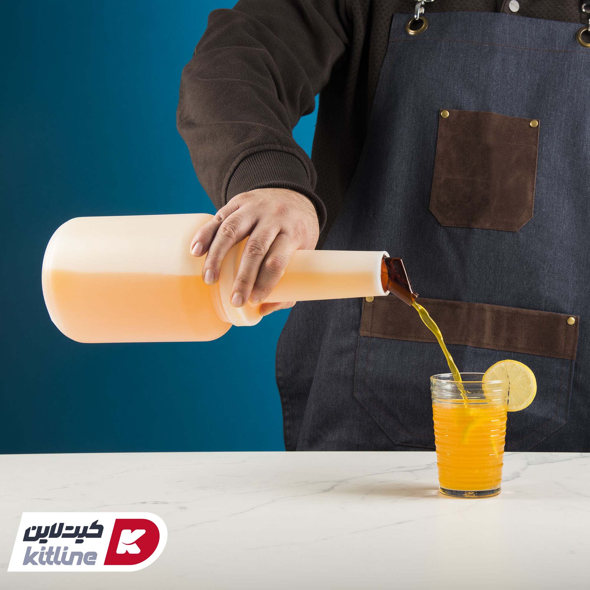 بطری با درب آسان ریز که از لوازم آشپزخانه است، به ما کمک میکند مایعاتی مانند آبلیمو، شربتها و عصارهها را با کمترین خطا به ظروف دیگر منتقل نماییم.