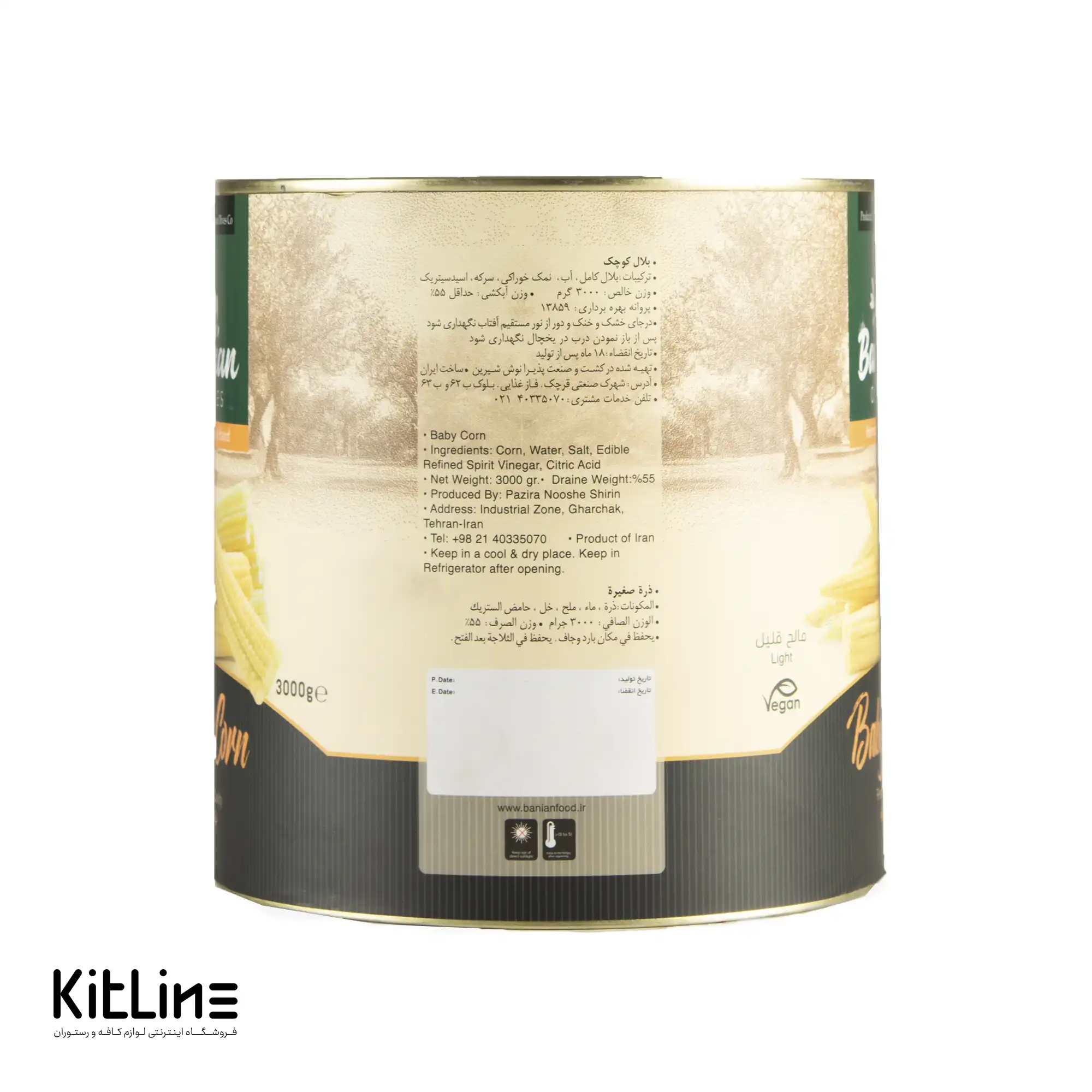 - بیبی کورن بانیان در بستهبندیهای ۳ کیلویی ارائه میشود که برای استفاده در رستورانها، کیترینگها و هتلها ایدهآل است.