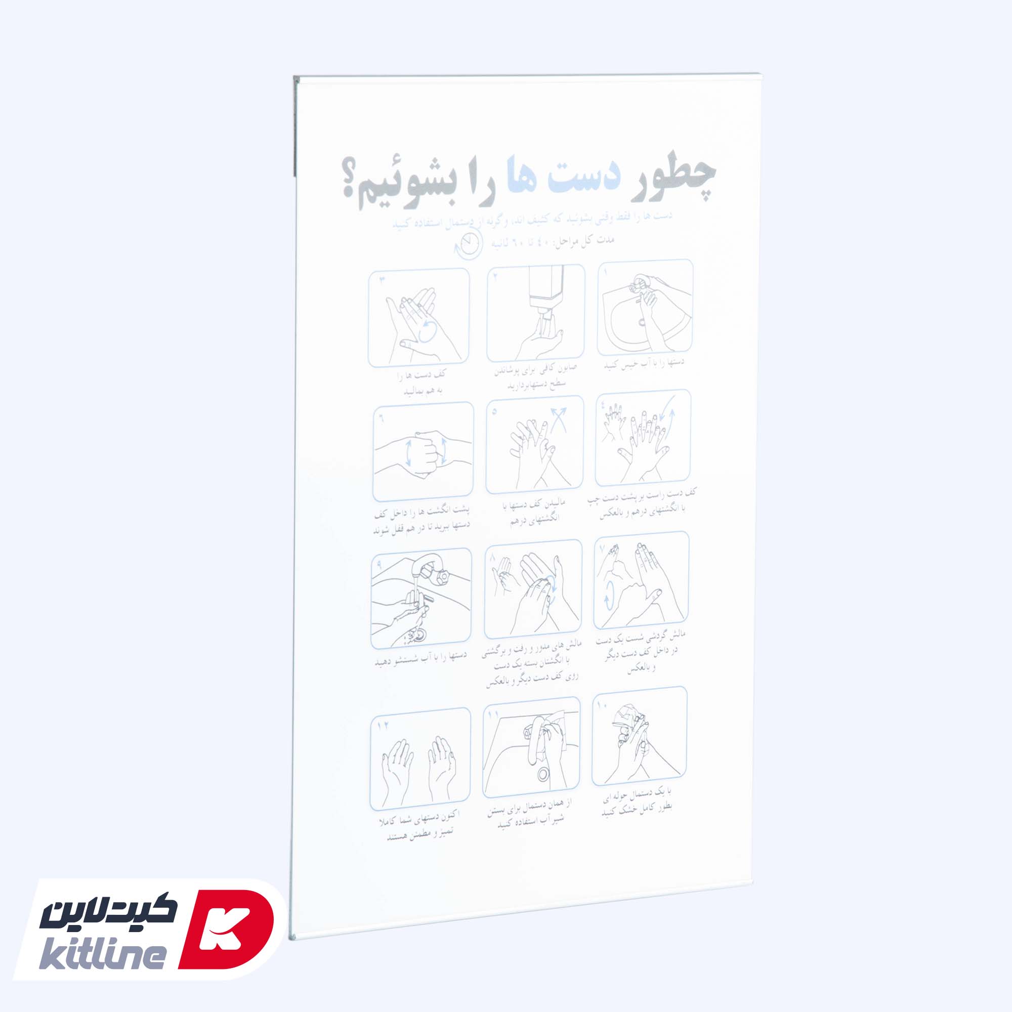 تابلوهای رستورانی به شما این امکان را می دهد تا به سرعت و به راحتی اطلاعات لازم را به مشتریان انتقال دهید. تابلوهای رستورانی برای انواع مختلف کسب و کار طراحی شده اند. برای رستوران، هتل، کافی شاپ و یا مغازه می تواند برای صرفه جویی در وقت برای دادن توضیحات اضافه و راهنمایی مشتریان خود از این تابلوها بر اساس نیاز استفاده کند. تابلو چطور دست ها را بشوئیم با فونت مشکی در پس زمینه سفید آن باعث شده تا از فاصله دور نیز به راحتی قابل خواندن باشد. جنس این تابلوها آلومینیوم آنادایز شده می باشد و این تابلو قابلیت نصب با چسب دو طرفه را نیز دارد.همچنین می توانید این تابلو را به صورت ساده و یا با استفاده از قاب های پروفیلی نصب کنید.