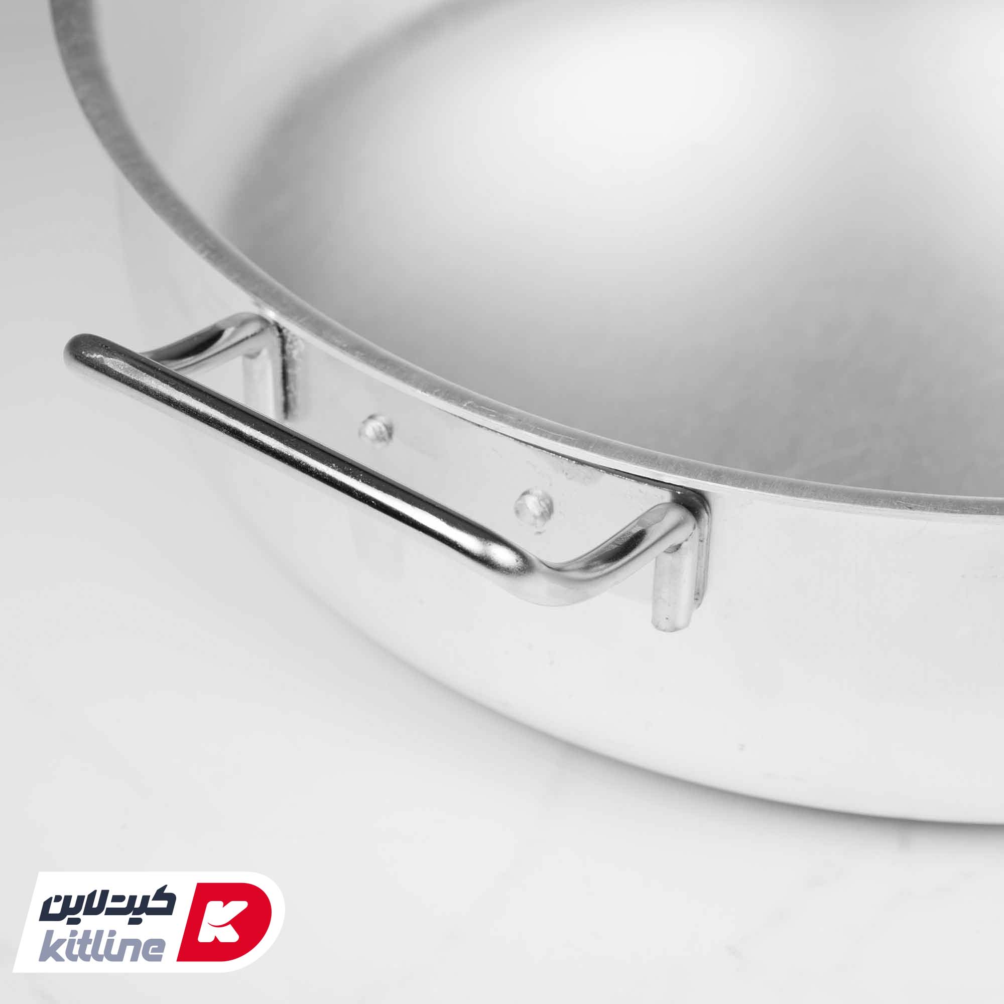 تابه آلومينيومی دو دسته همرا درب با قطر ۴۲.۵ سانتیمتر را میتوان روی گاز و فر استفاده کرد اما برای اینداکشن مناسب نمیباشد.
