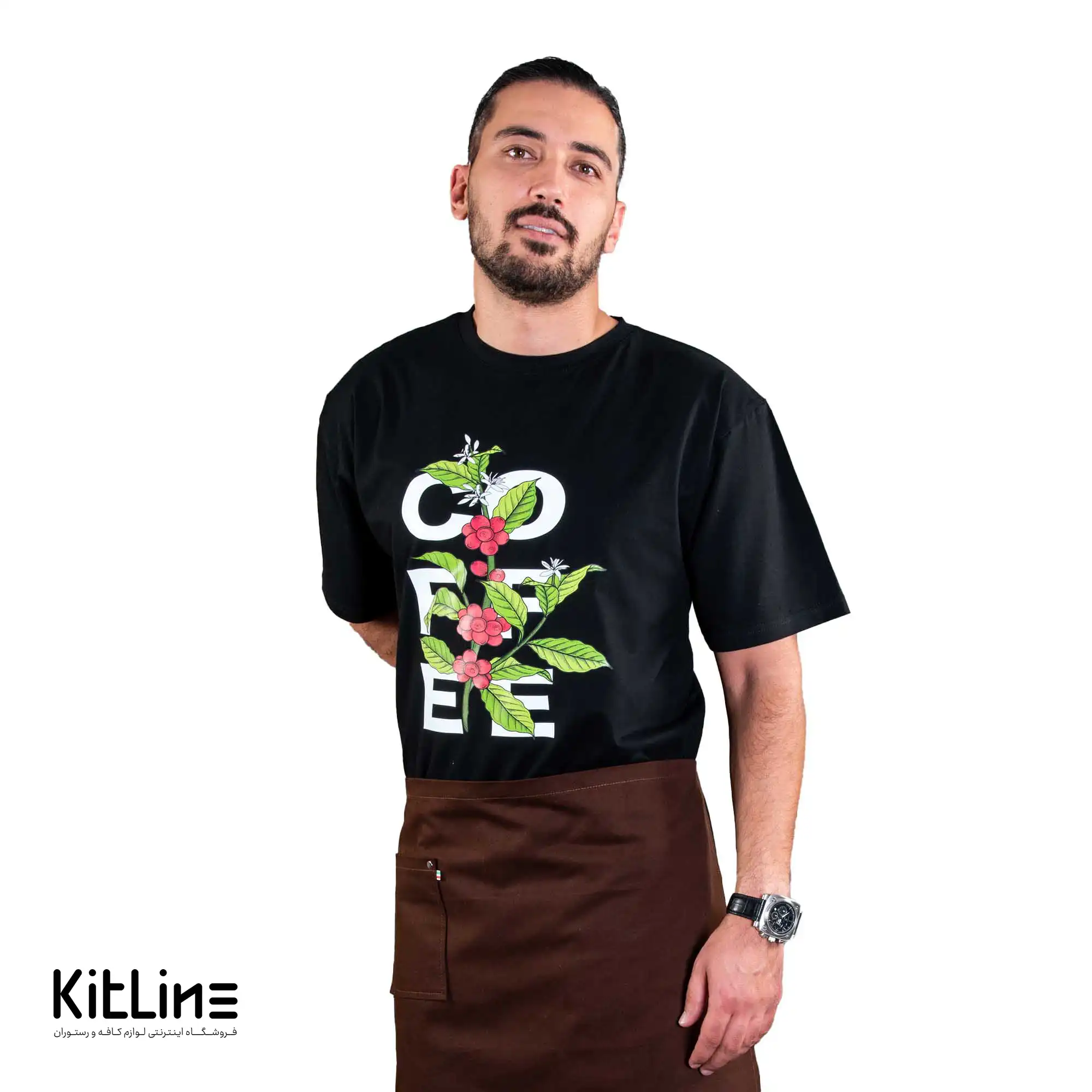 ظاهر حرفهای و هماهنگ: تیشرت مشکی Coffee Plant با طراحی مینیمال و شیک، به کارکنان ظاهری حرفهای و هماهنگ میبخشد که تاثیر مثبتی بر تجربه مشتریان دارد.