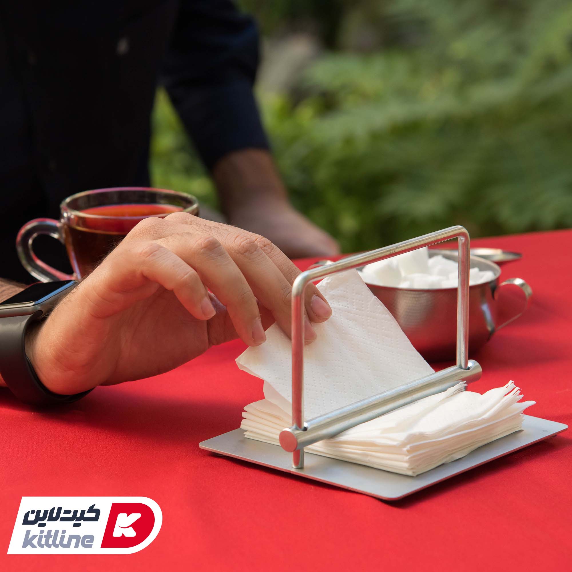 جنس آلومینیومی این محصول باعث شده تا ضد زنگ و مقاوم در برابر ضربه بوده و در محیط های باز نیز می توان از آن استفاده کرد. قابل ذکر است که در این جای دستمال کاغذی رومیزی یک میله برای نگه داری دستمال علی الخصوص در فضای باز و یا OUTDOOR تعبیه شده است. این محصول برند کیچن تک kitchentech می باشد.