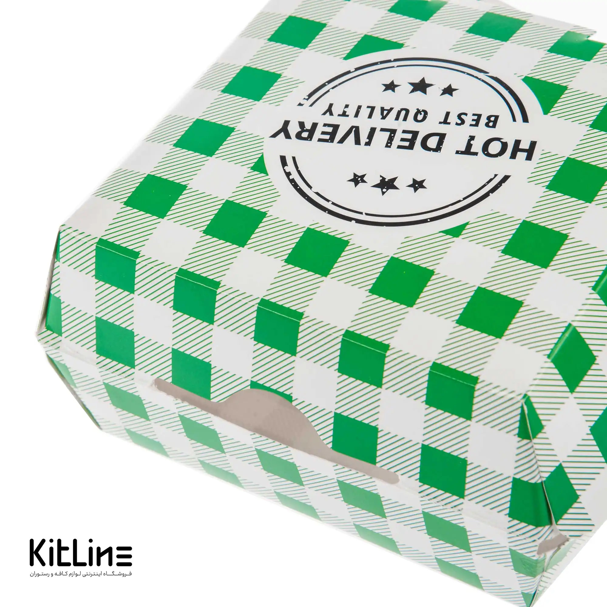 جعبه برگر یکبار مصرف کاغذی ایندربرد مک دونالدی ۱۳×۱۵ سانتیمتری شطرنجی سبز (کارتن ۲۷۰ عددی)