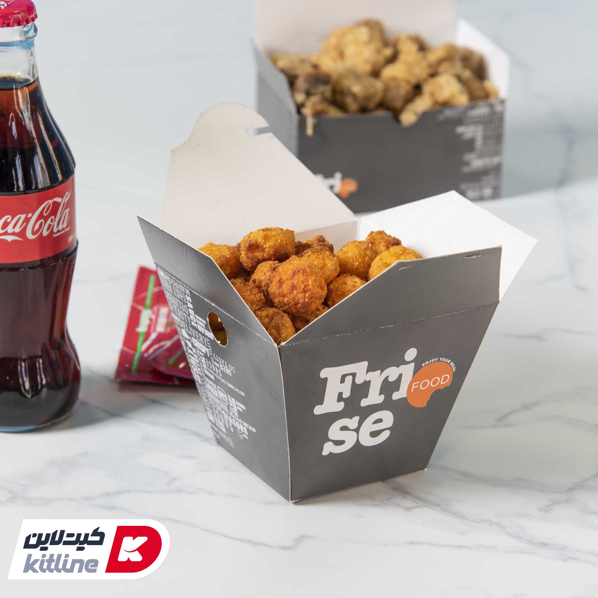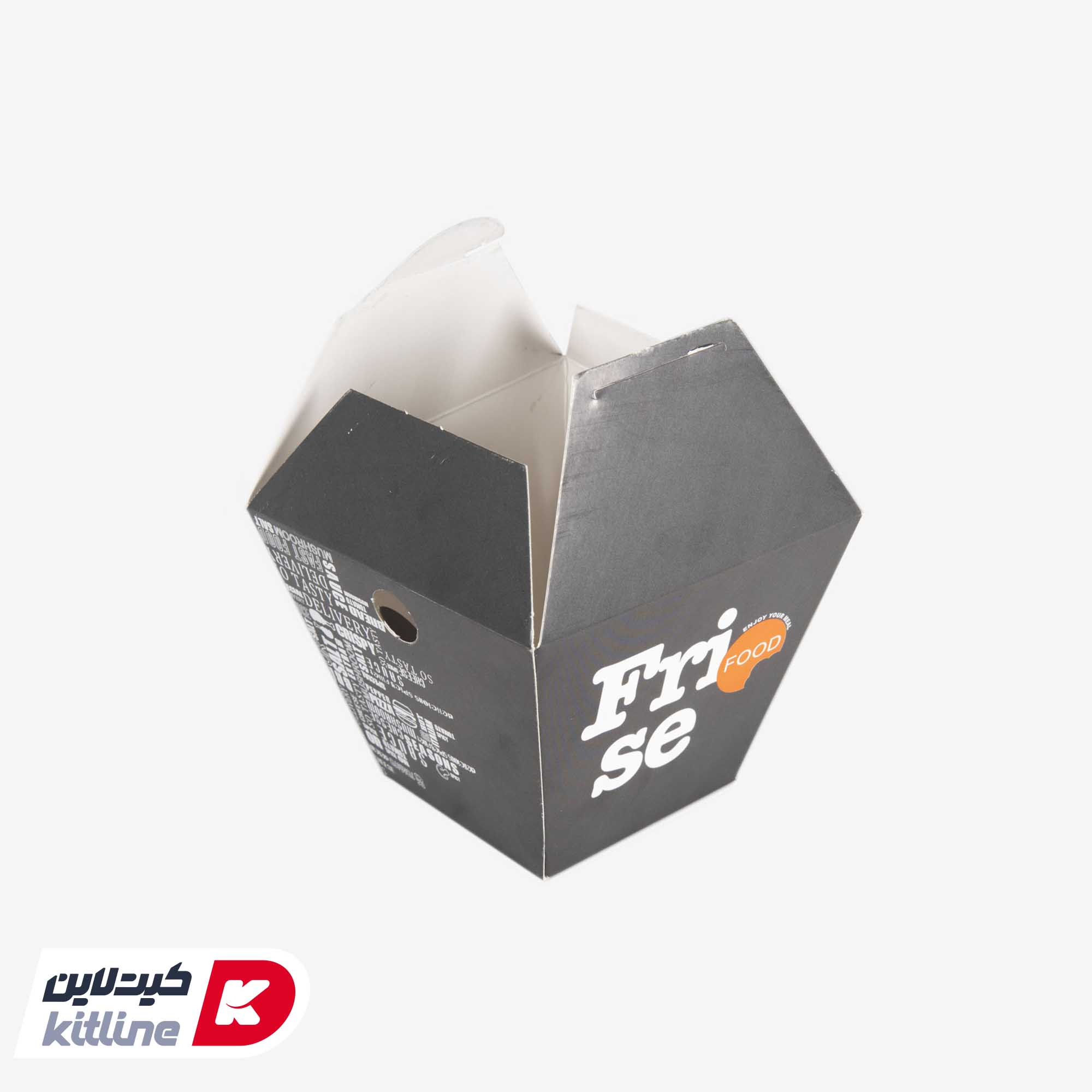 جعبه سیب زمینی مخروطی، محصولی مناسب برای سرو سیب زمینی سرخ کرده، قارچ سوخاری، پنیر سوخاری و دیگر مزه های کنار غذا در داخل سالن، دلیوری و سفارش بیرون بر میباشد.