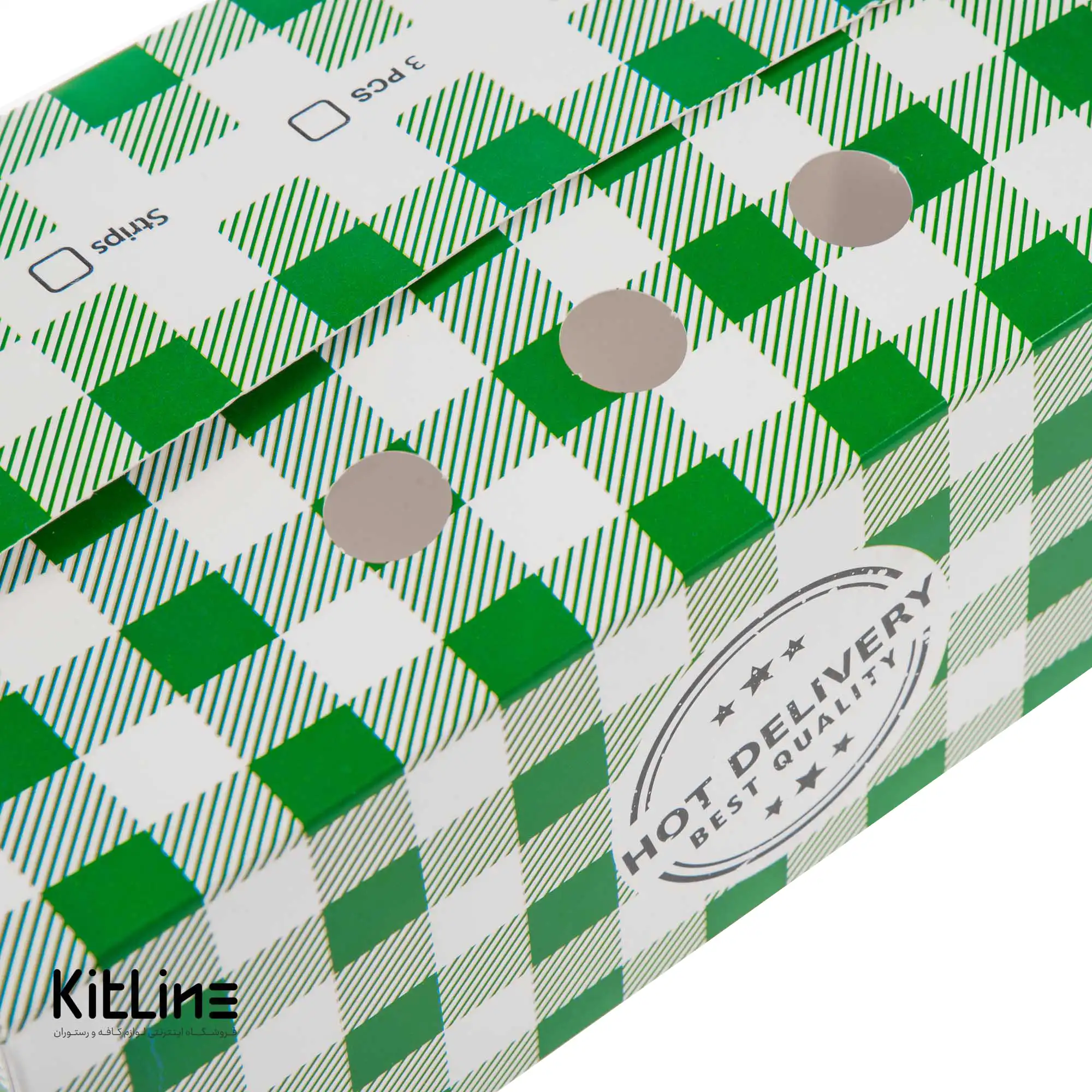 ویژگی های جعبه سوخاری یکبار مصرف کاغذی ایندربرد شطرنجی سبز :