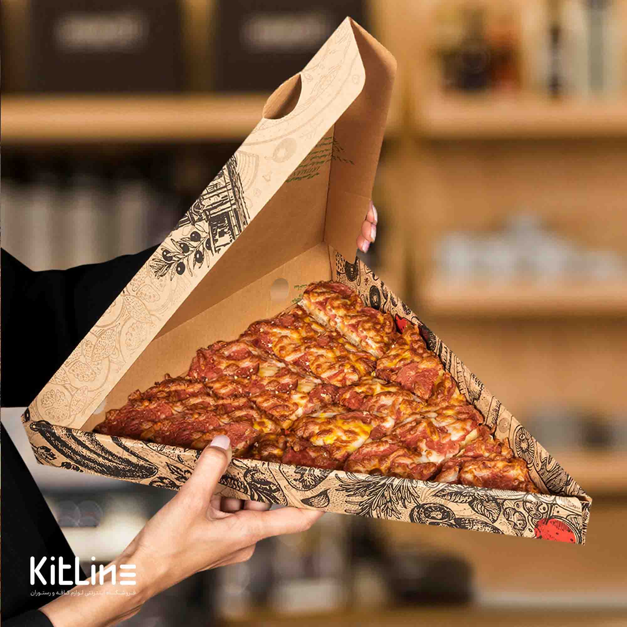 • مناسب برای دلیوری: طراحی مقاوم و عایق حرارتی جعبه پیتزا مثلثی، نه تنها به حفظ گرما و طعم اصلی پیتزا کمک می‌کند.